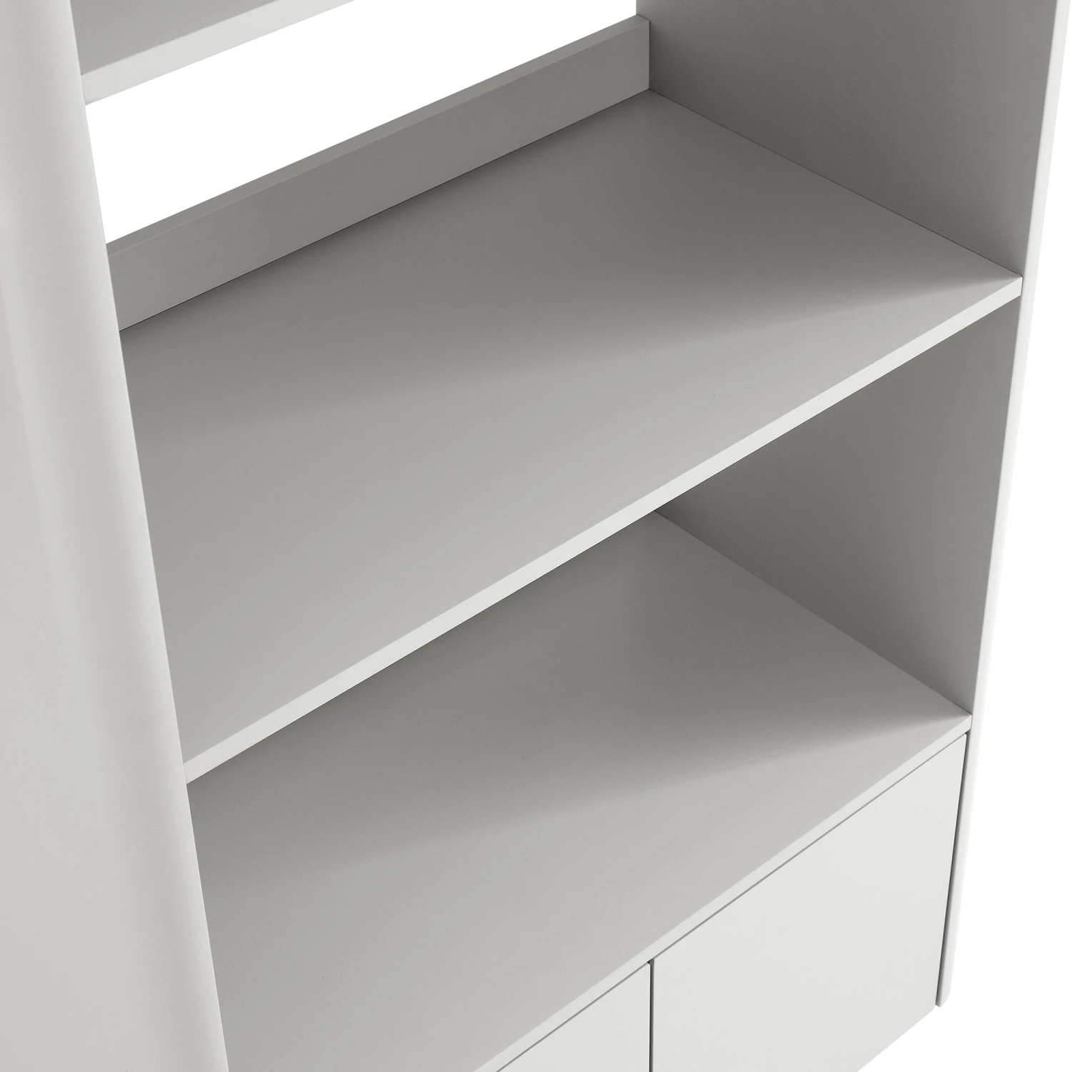 - The bookcase 3 shelves on top of 2 door cabinet, offering ample storage space inside.