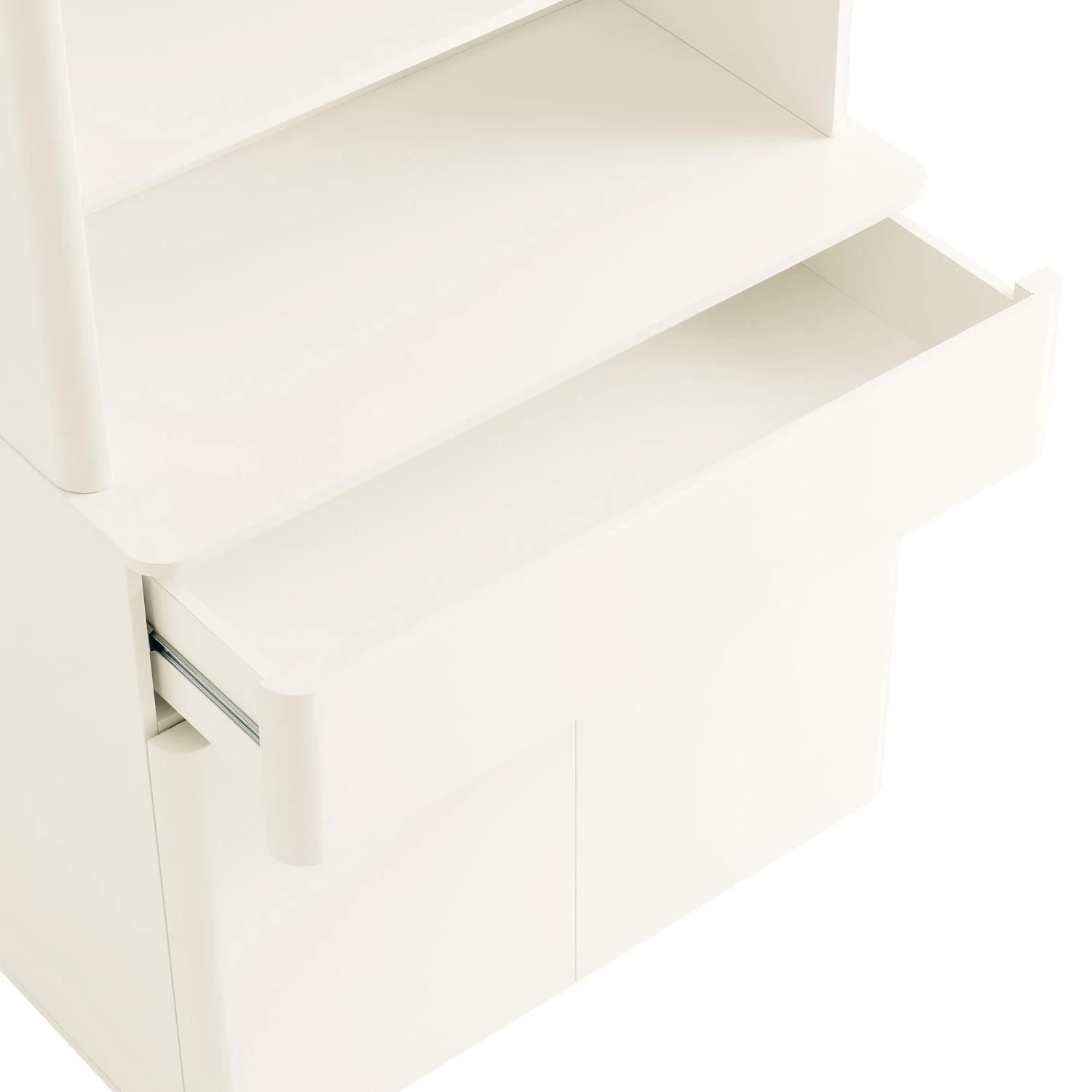 - Curved edges complement the handle-less, push-open drawer and cabinet doors for a modern, sleek look.