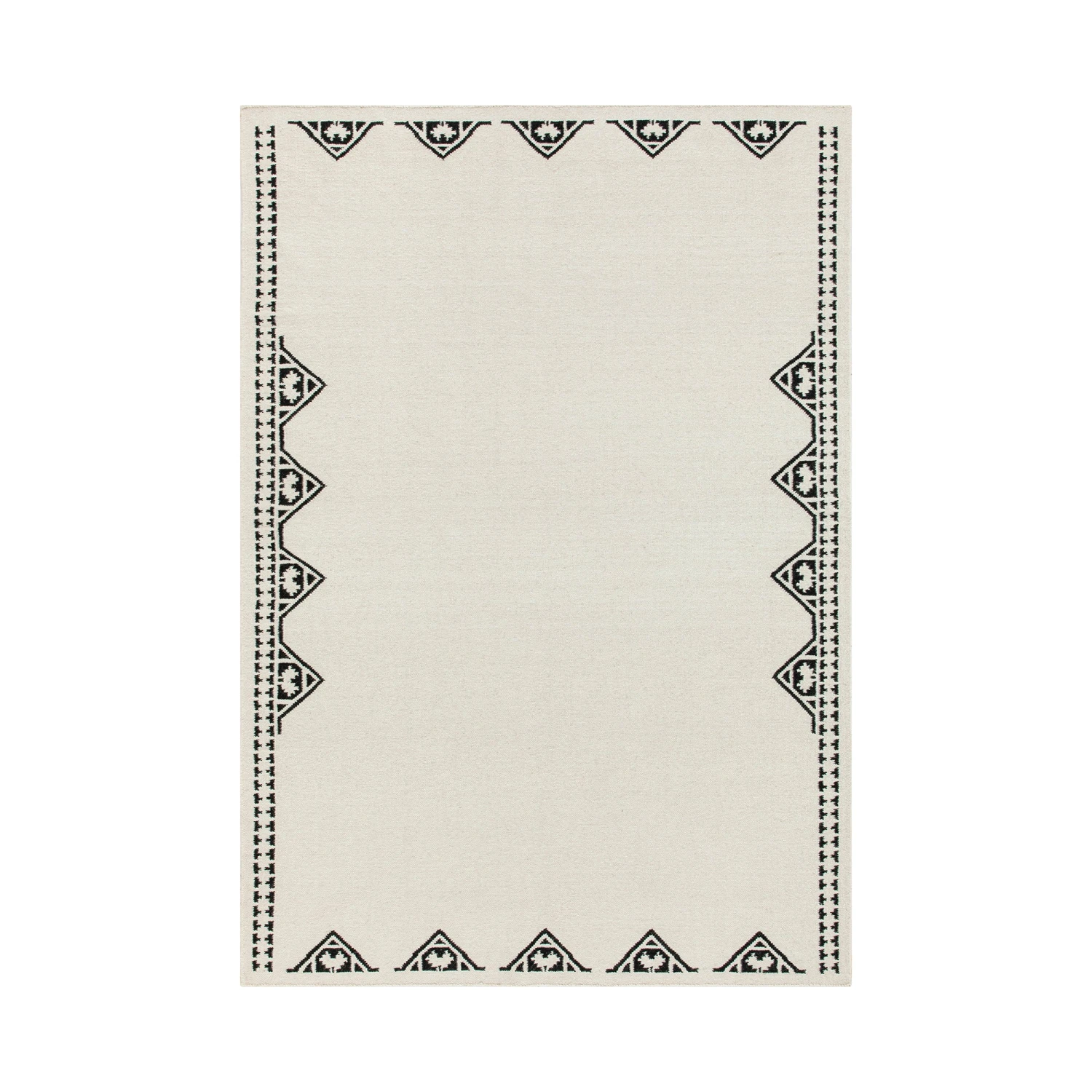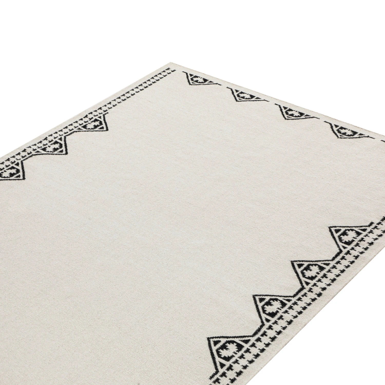 - This stylish cream rug is beautifully finished with an Aztec inspired patterned border in striking black.