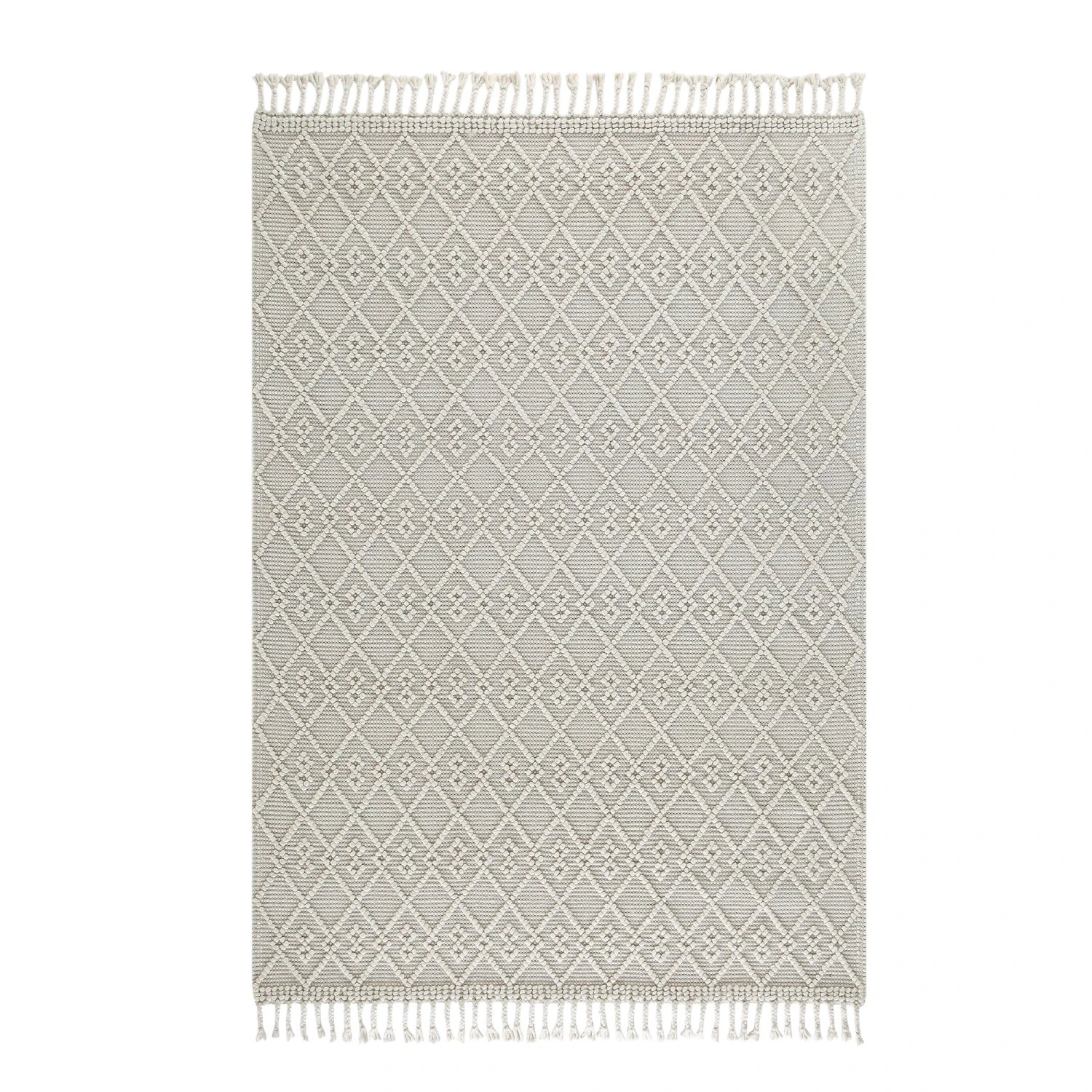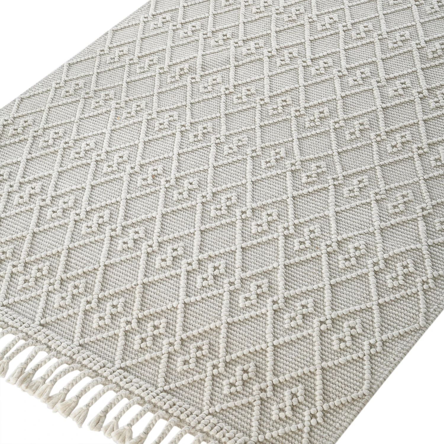 - The Avanti rug is in a beautiful cream colour and features a stylish geometric design with a raised bubble weave which creates a stunning statement piece. The rug is complete with handwoven tassels adding to its authentic, handmade look