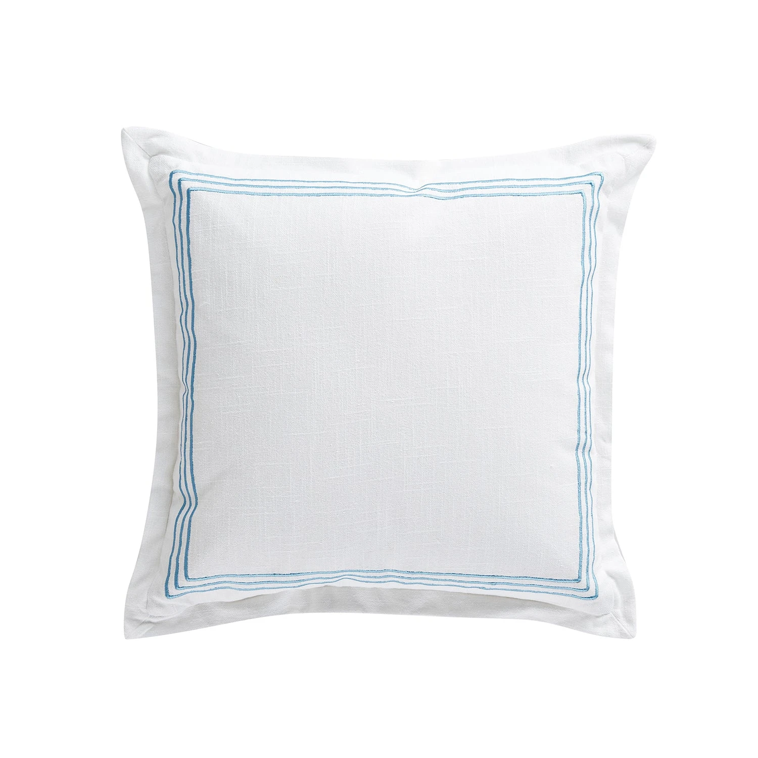 - Crafted in soft cotton, the cushion is a crisp white and features a sleek and sophisticated triple line embroidered border in a rich royal blue satin stitch for a tailored finish, striking the perfect balance between classic and contemporary. The subtle hints of royal blue create a feeling of serenity and tranquility, while the neutral white base complements a variety of room colour palettes.