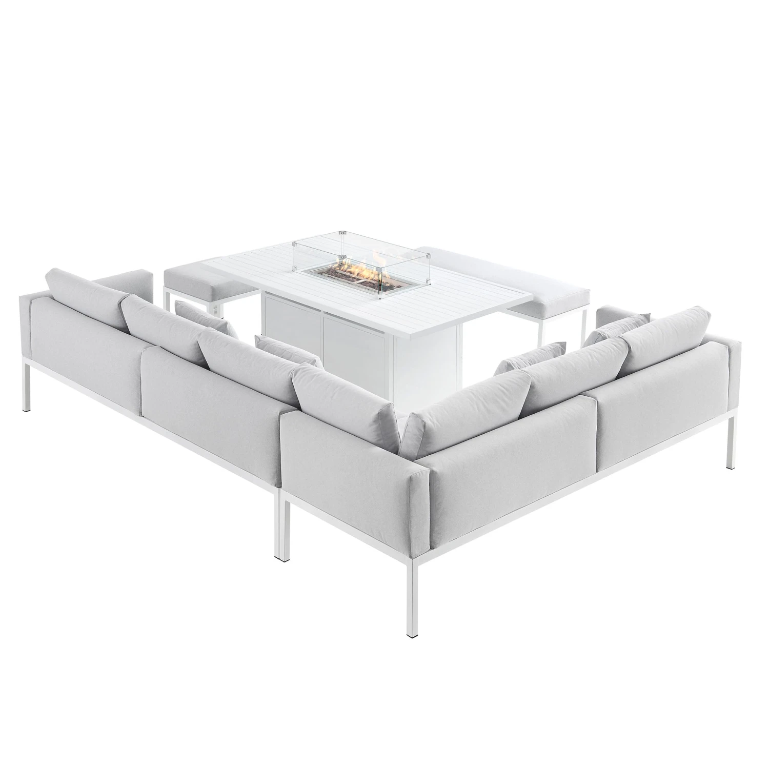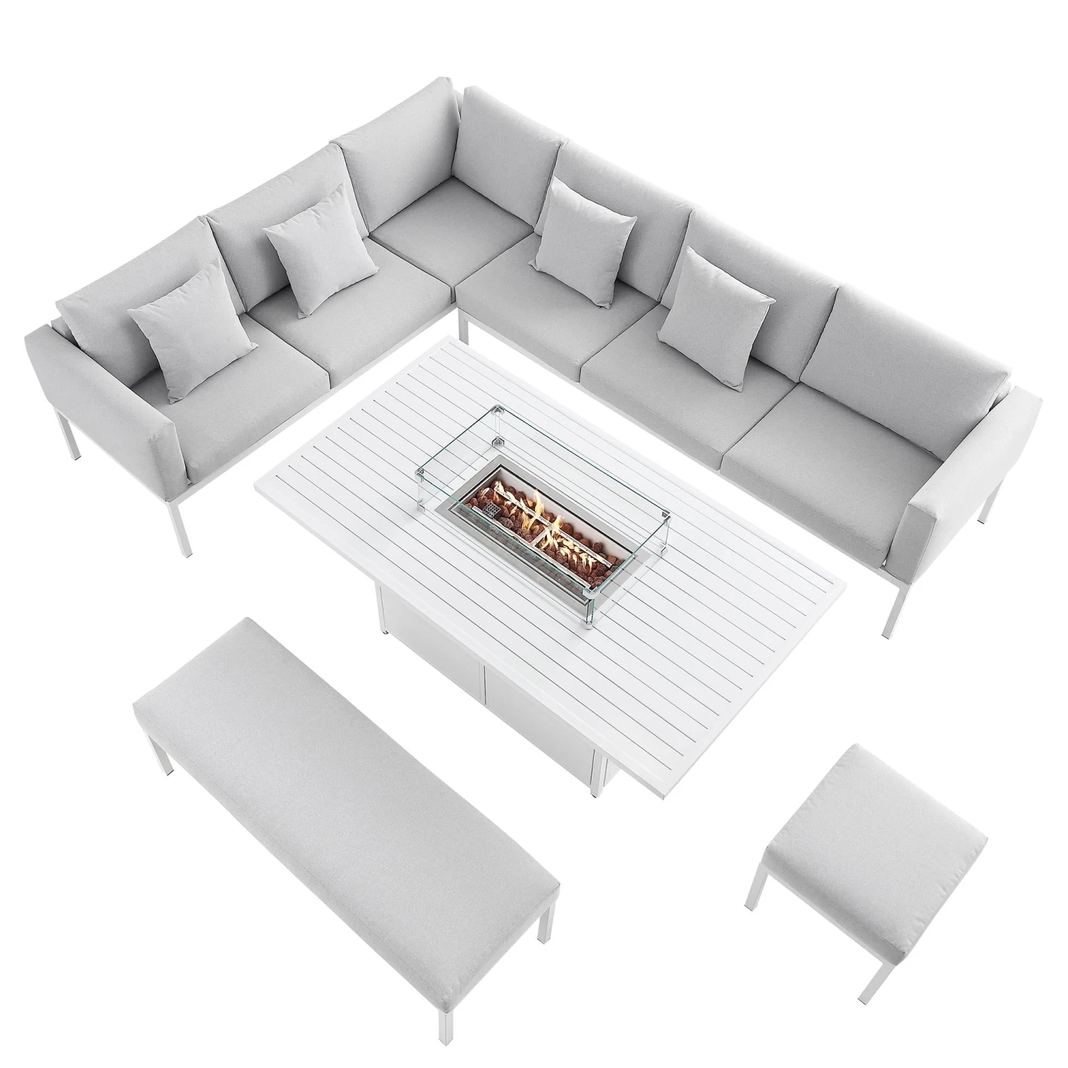 - This sleek and modern corner dining set includes a firepit table which will really elevate your dinner parties