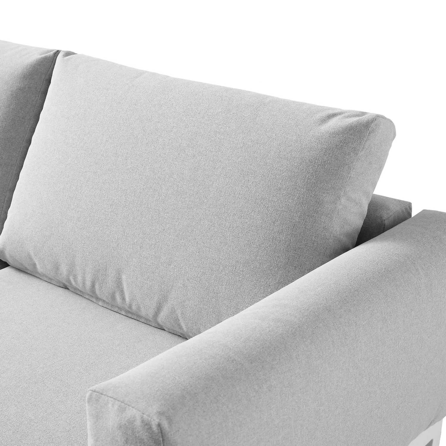 - Amply padded back and seat cushions are upholstered with UV resistant fabric in an elegant light grey colour to coordinate the white frame.