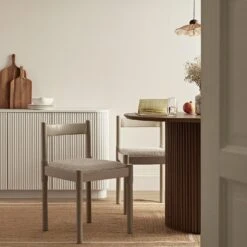 Fulbourn Taupe Boucle Dining Chair With Natural Wood Effect Legs