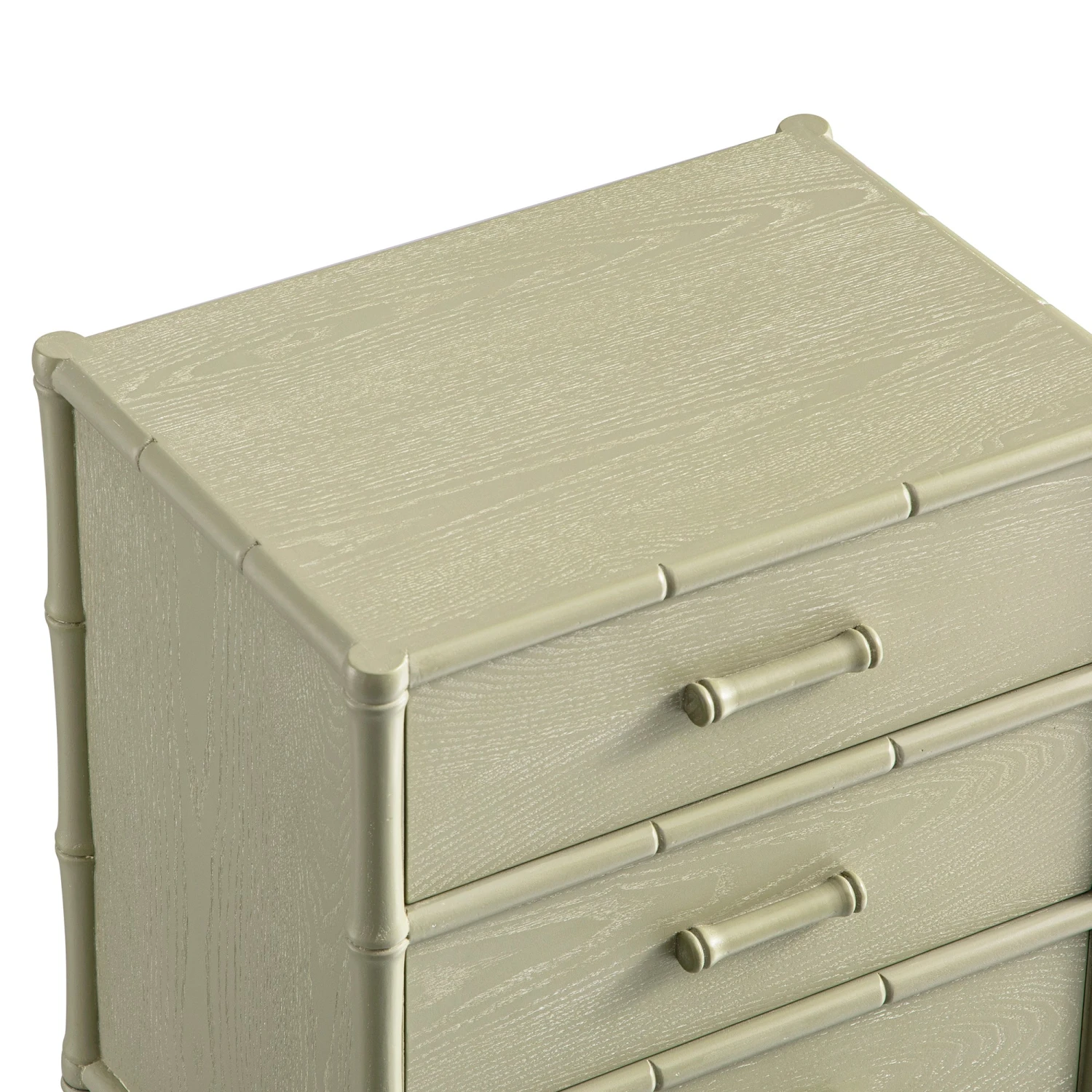 - Complete the look: Pictured with the Elstowe Faux Bamboo 3-Drawer Bedside Table in Sage Green, is our Daphnis Cinnamon Velvet Sofa Bed, Loveseat.