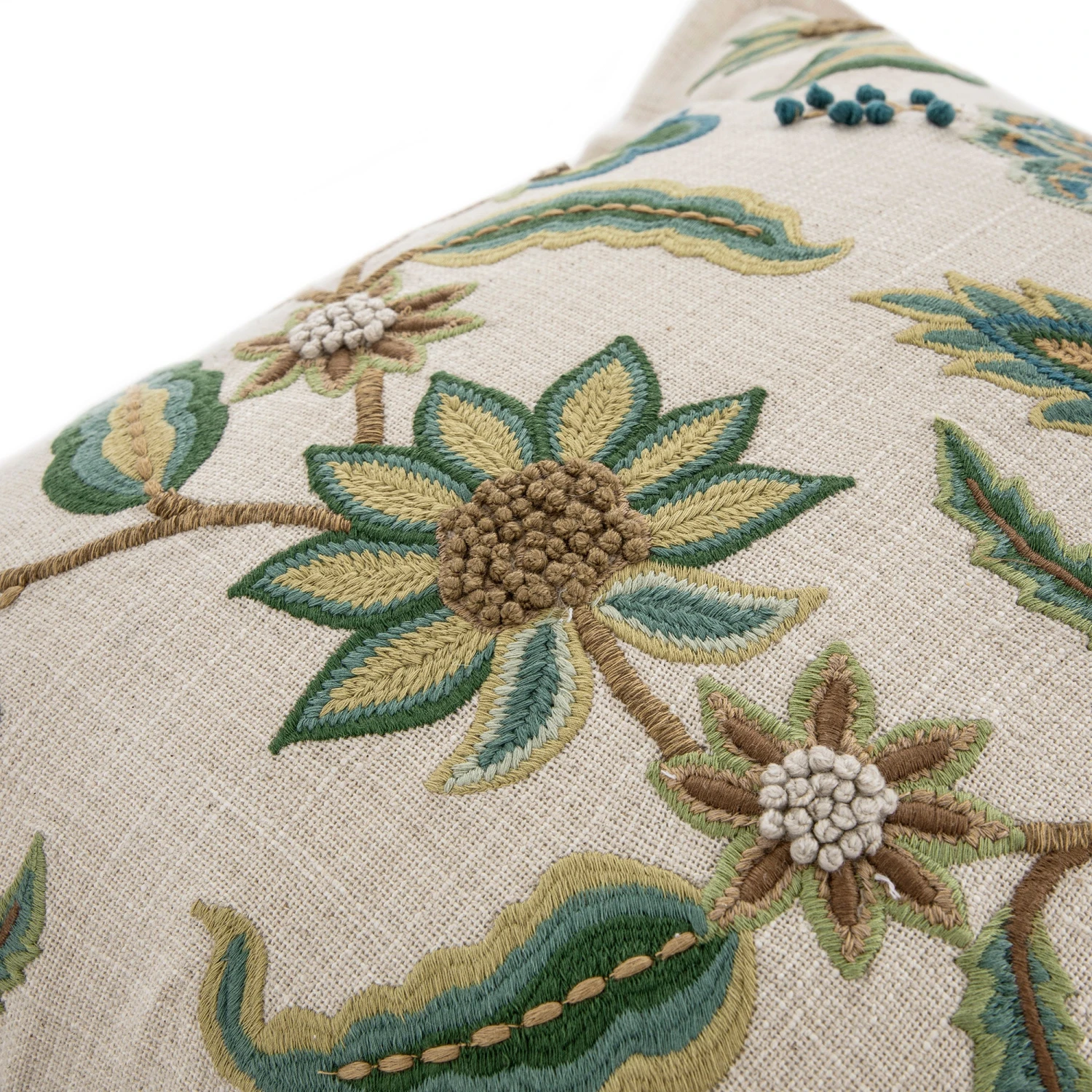 - Our Jacobean Oasis cushion is uniquely designed by daals and handmade in India using the finest materials and embroidery techniques.