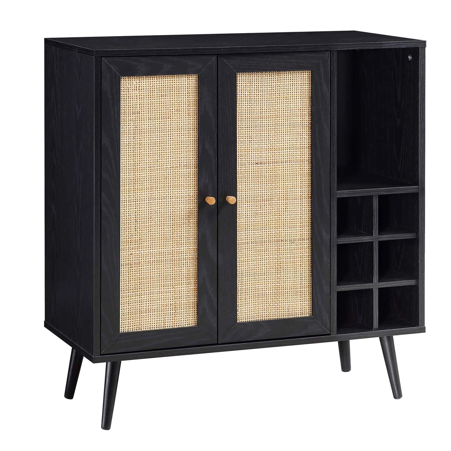 - Complete the look: Pictured with our Black Frances Woven Rattan Drinks Cabinet is our stylish Gold Berkeley Scallop Edge Wall Mirror.