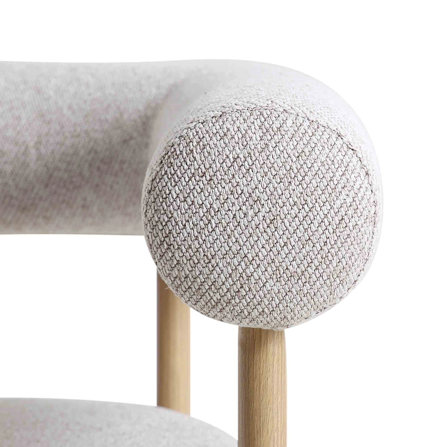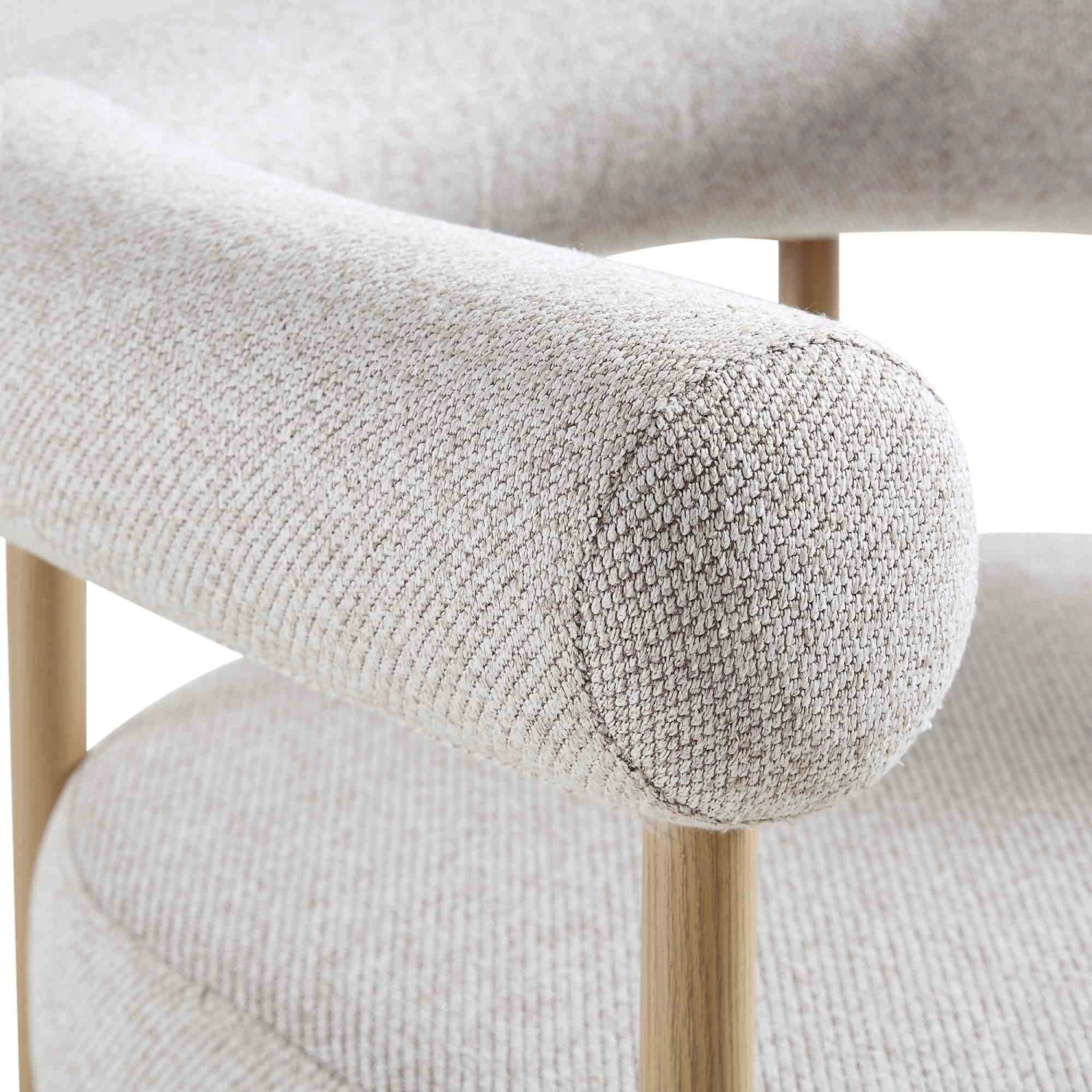 - Well-cushioned seat and premium woven fabric in beige colour is paired with natural wood effect legs for a sophisticated look.