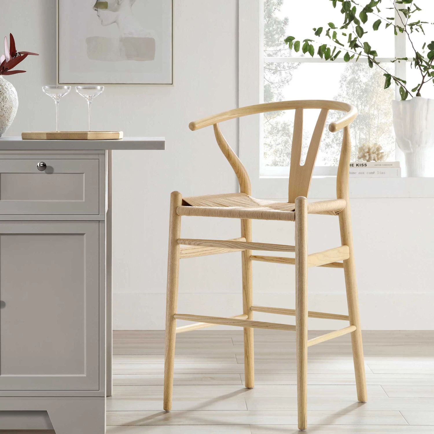 - Featuring the Y-shaped back and weaved seat pad, the chair is sturdily crafted from solid elm wood without compromising comfort.