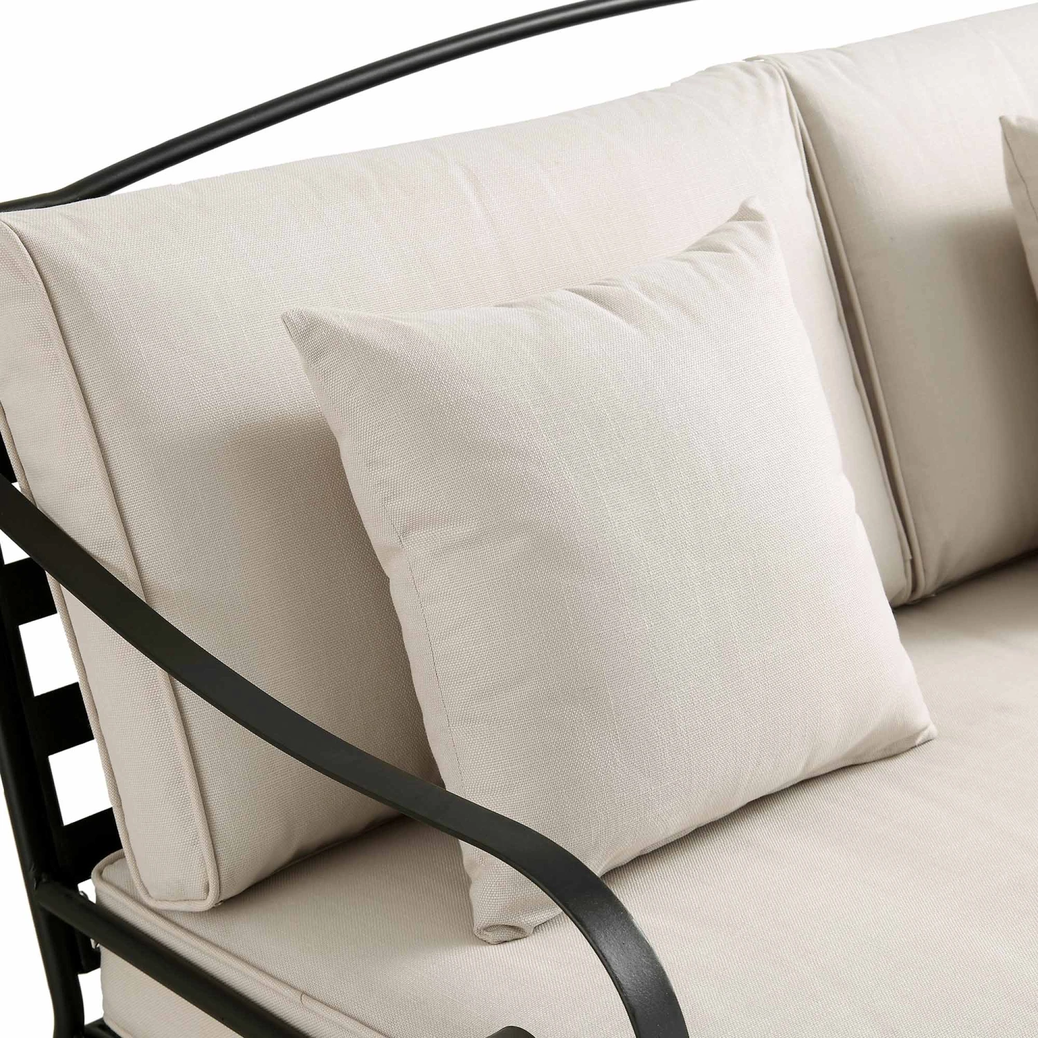 - Our Haymes Outdoor Sofa Set is made from hard-wearing iron, ensuring that the set is sturdy yet lightweight and long-wearing in all weather.