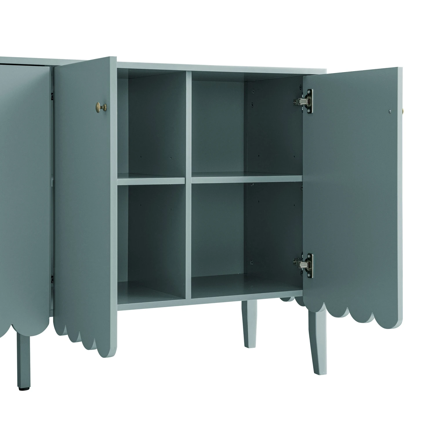 - Scalloped apron on bottom of doors add to the charm of the sideboard.