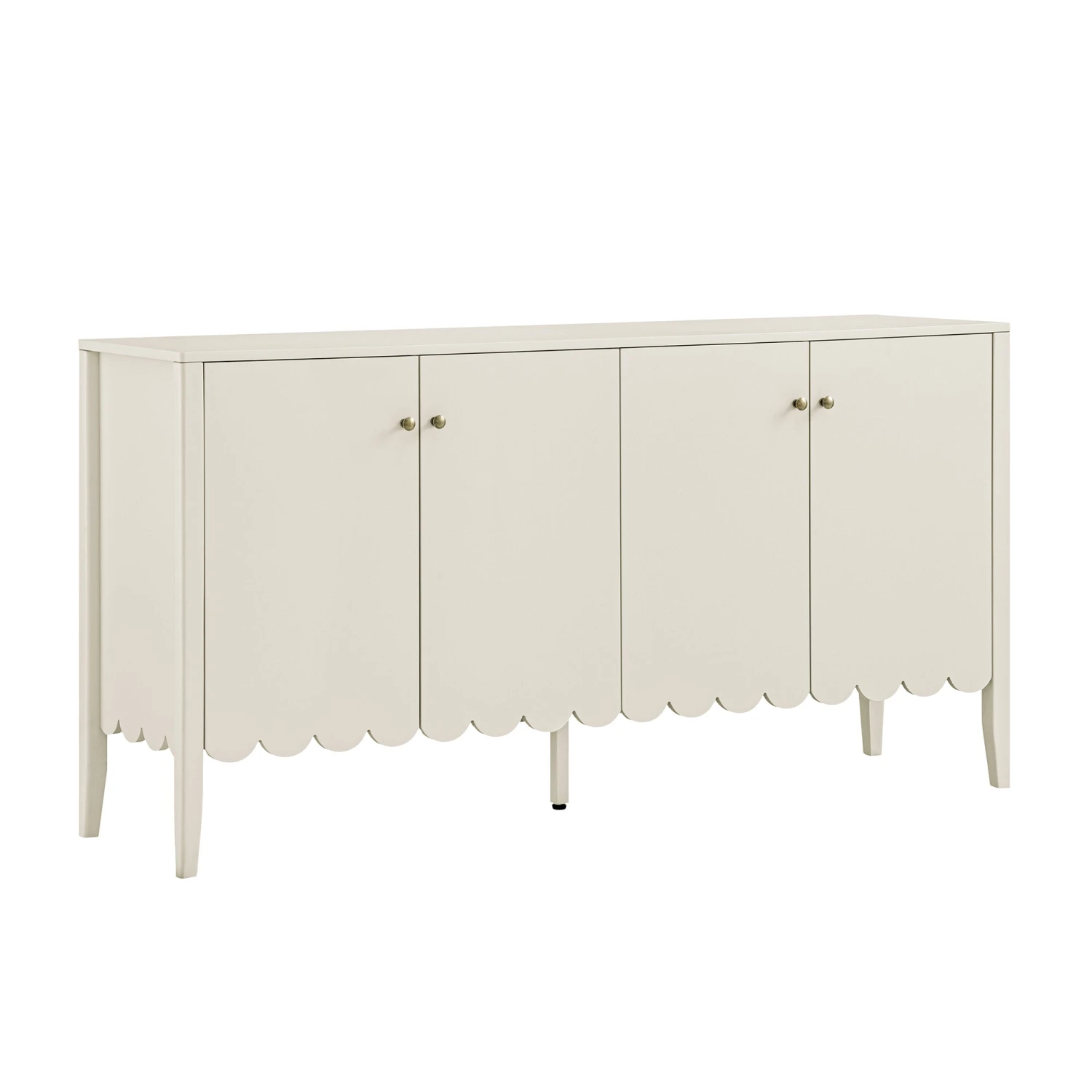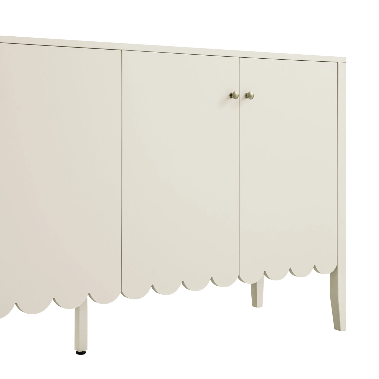- Scalloped apron on bottom of doors add to the charm of the sideboard.