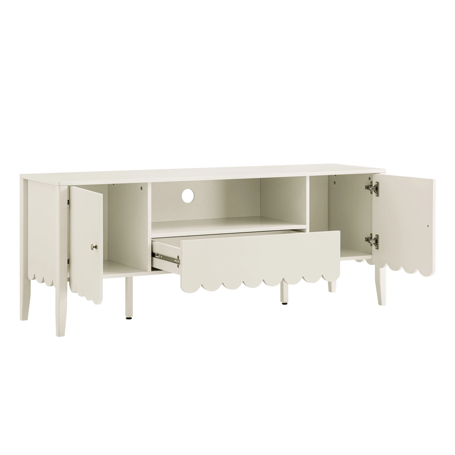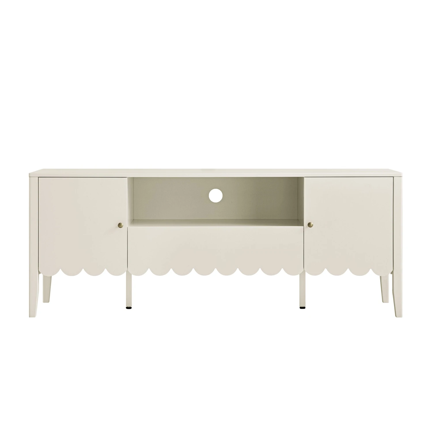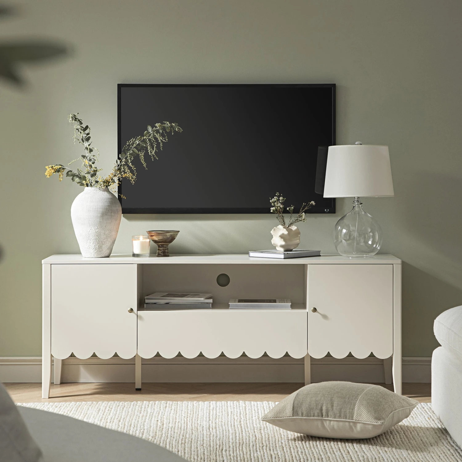 - Complete the look: Pictured with our Henley Scalloped Edge 150cm Wide TV Unit are our Aurora Hand Braided Cream Jute Rug and our Bronte Collection Patchwork Cushion