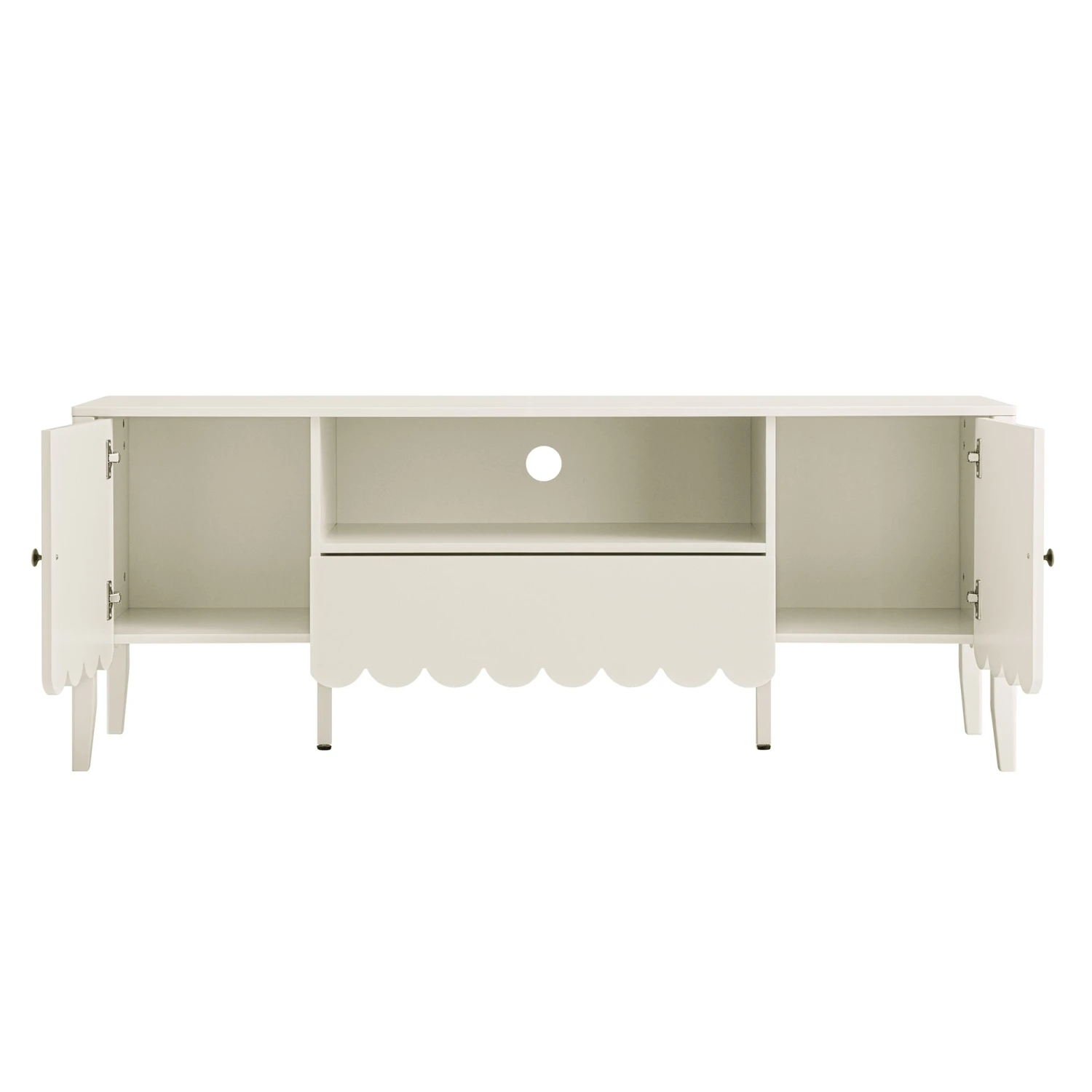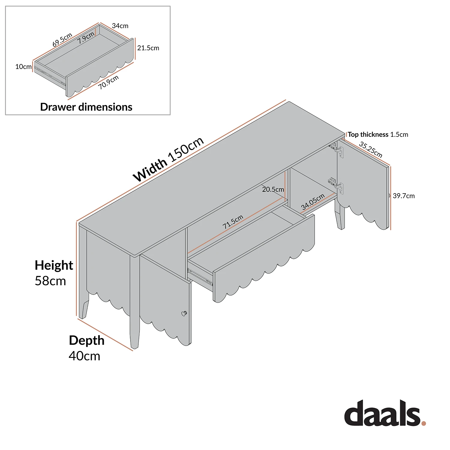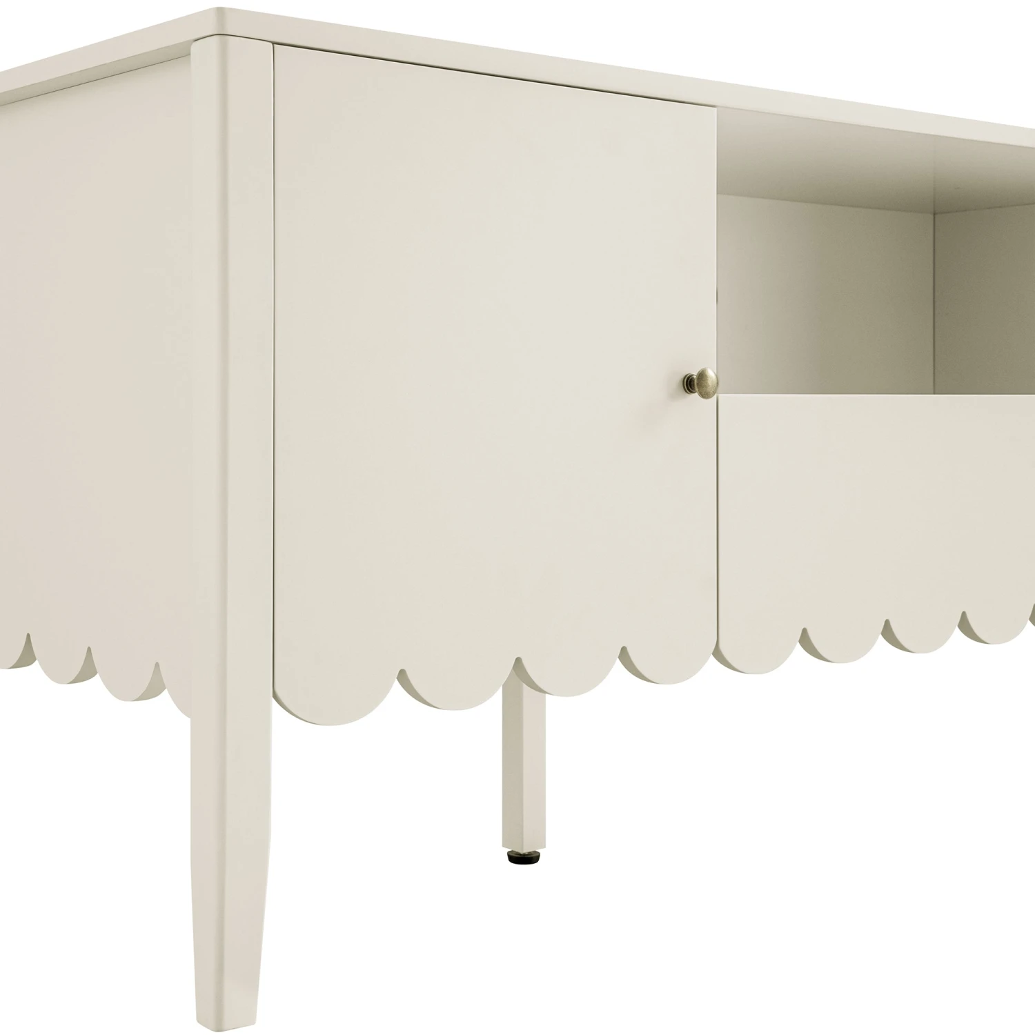 - Complete the look: Pictured with our Henley Scalloped Edge 150cm Wide TV Unit are our Aurora Hand Braided Cream Jute Rug and our Bronte Collection Patchwork Cushion