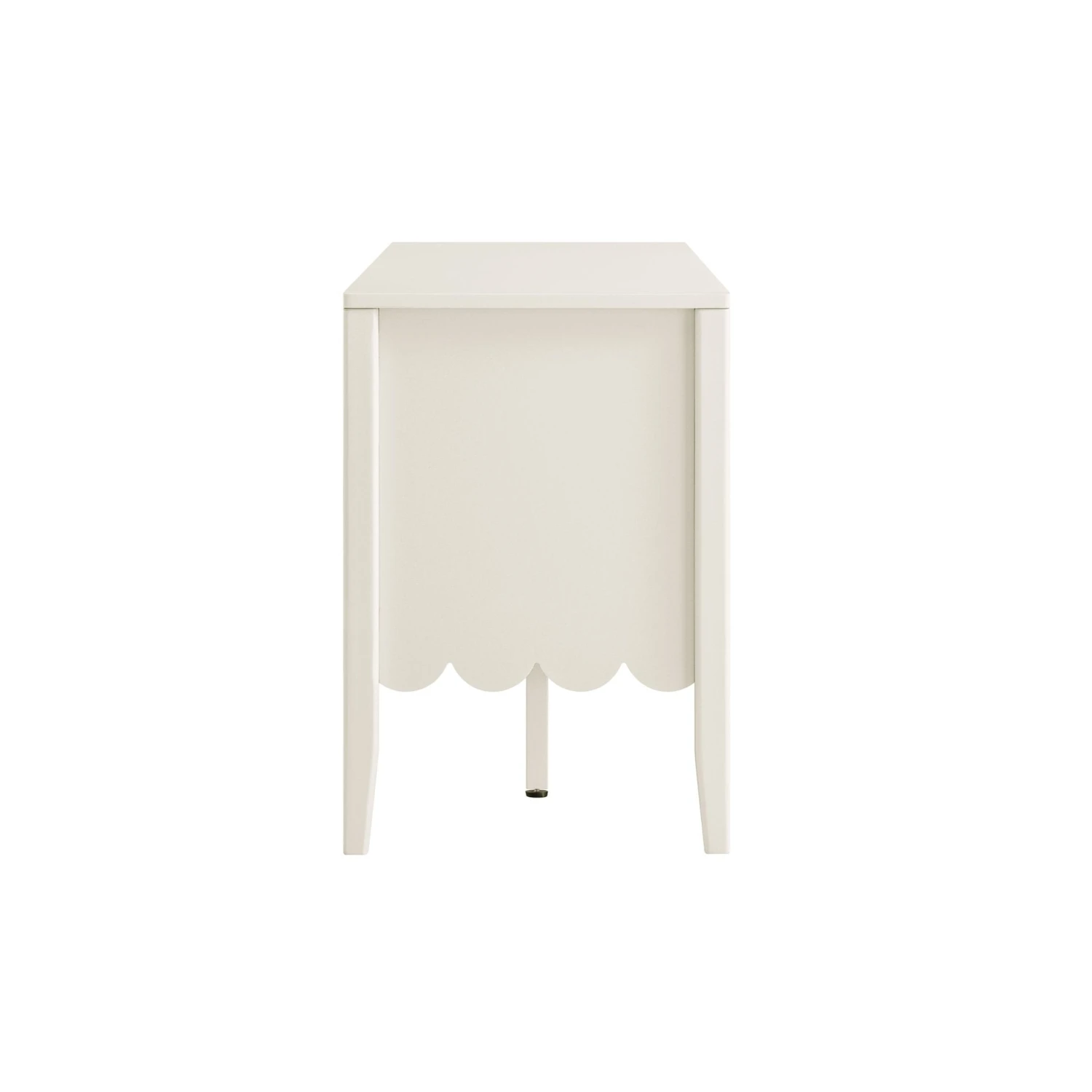 - Scalloped apron on bottom of cabinet doors and drawer front add to the charm of the unit.
