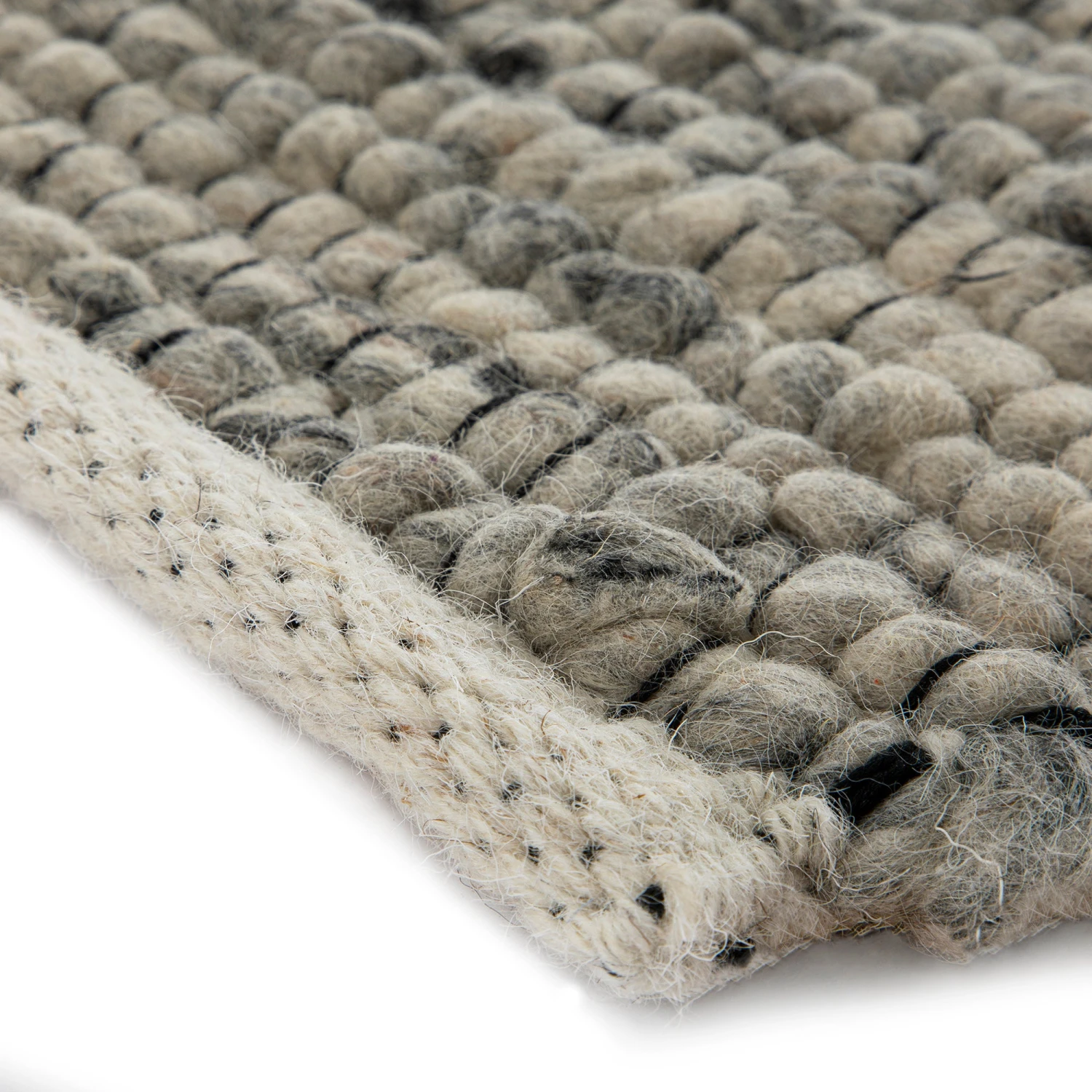 - Our Indra rug has been hand woven with a mixture of yarns in tones of grey for a beautiful variegated look.