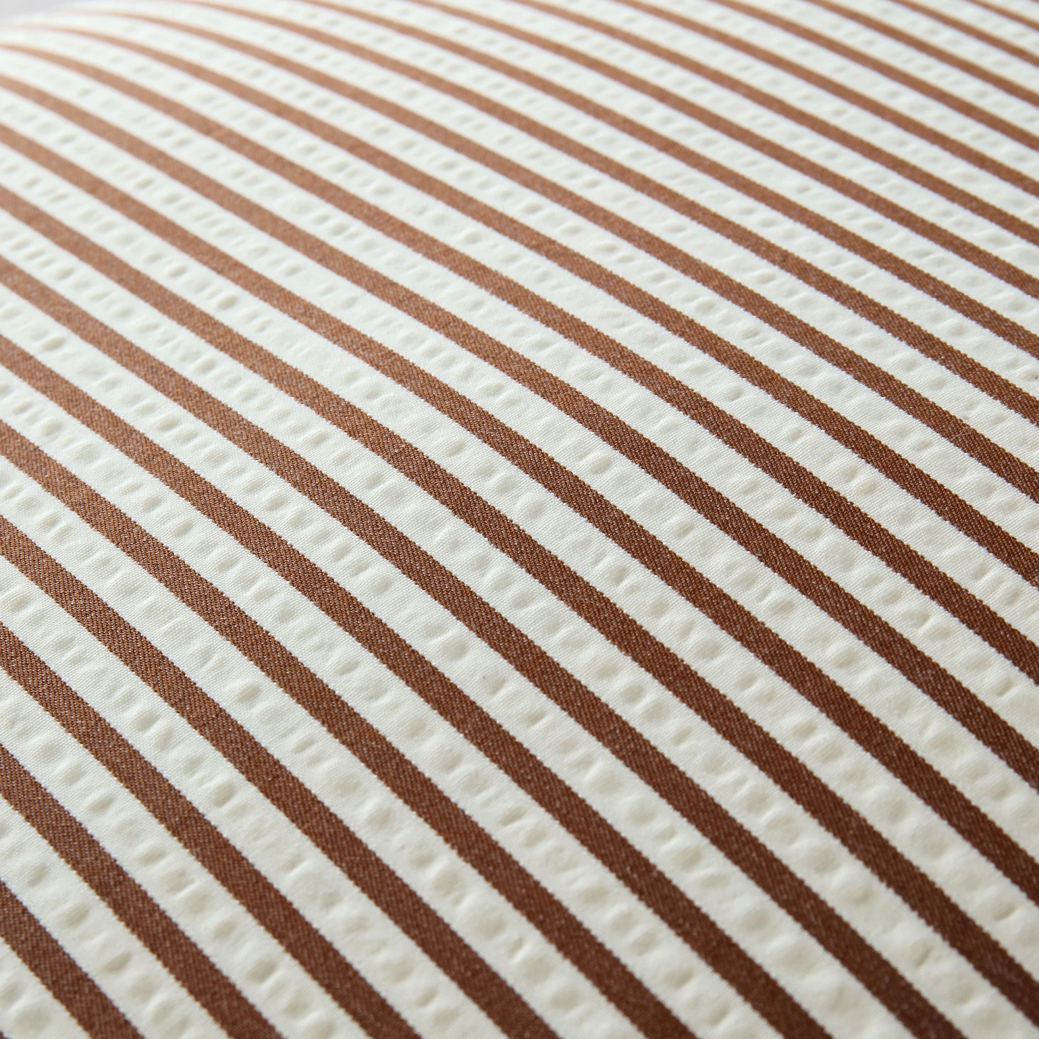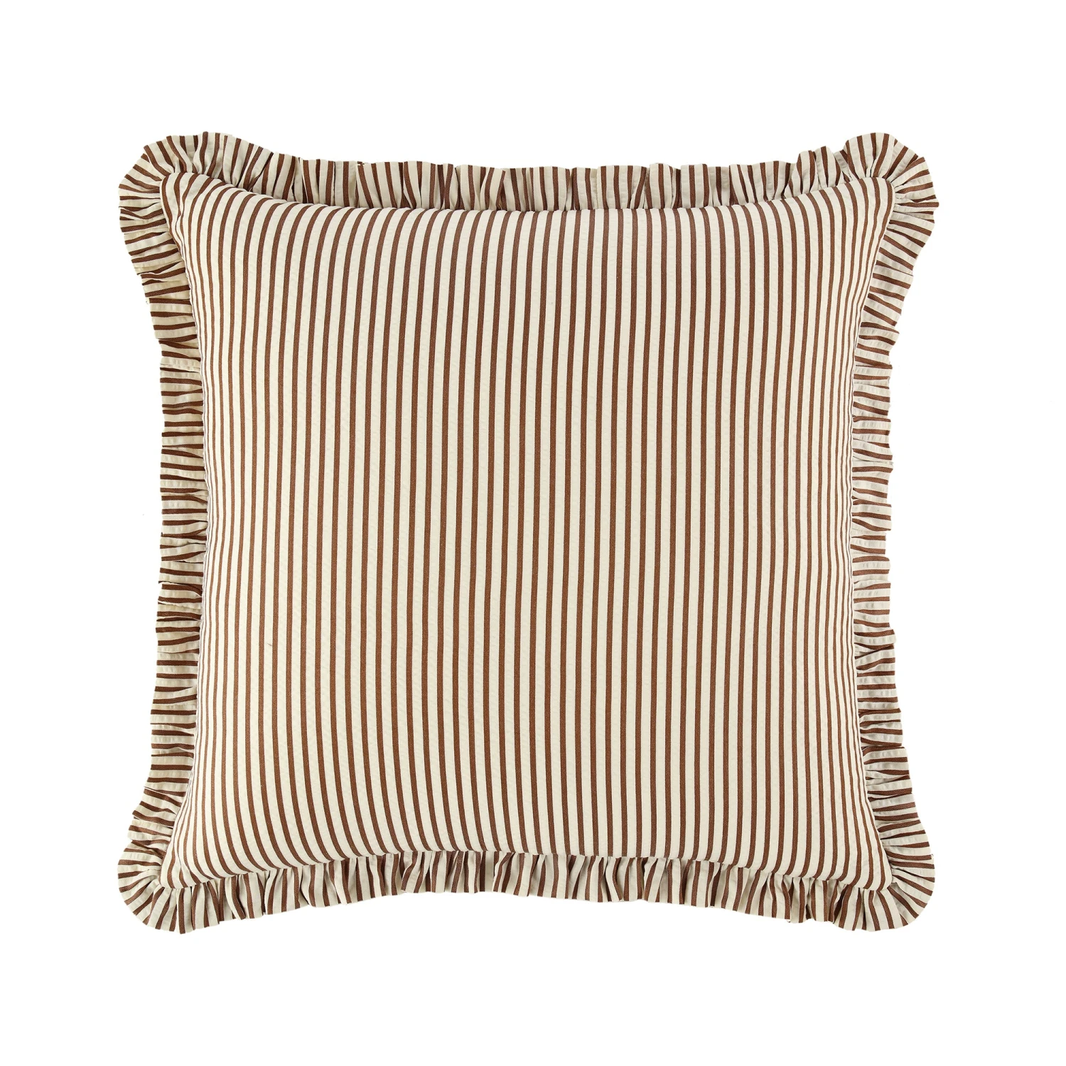 - Made up of beautiful caramel colour seersucker ticking stripe fabric on both sides with a pretty frill edge, this cushion will inject lots of style into your home.