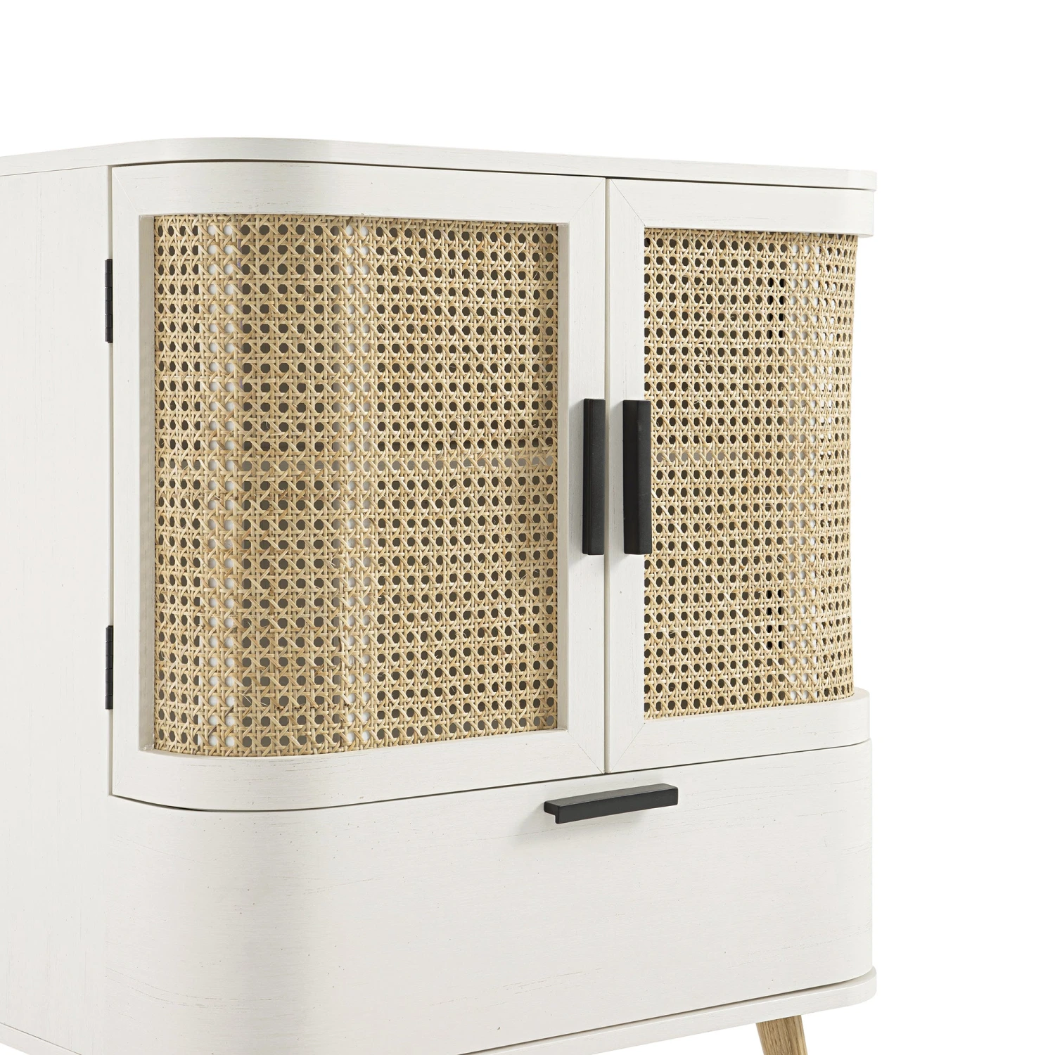 - Cabinet door front: hand-woven natural rattan