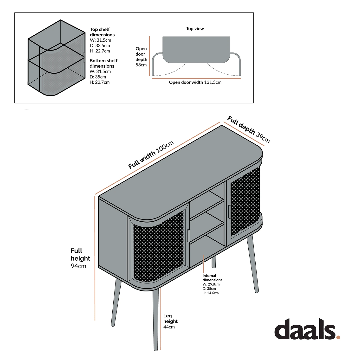 - Our Izzy buffet sideboard features curved profile with 2 rattan doors.