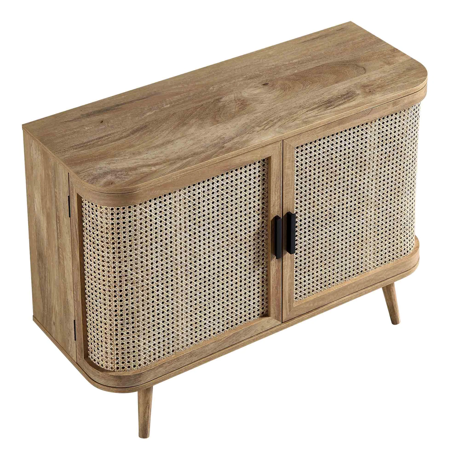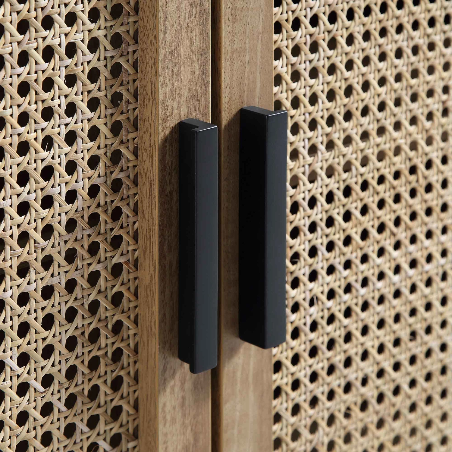 - Cabinet door front: hand-woven natural rattan