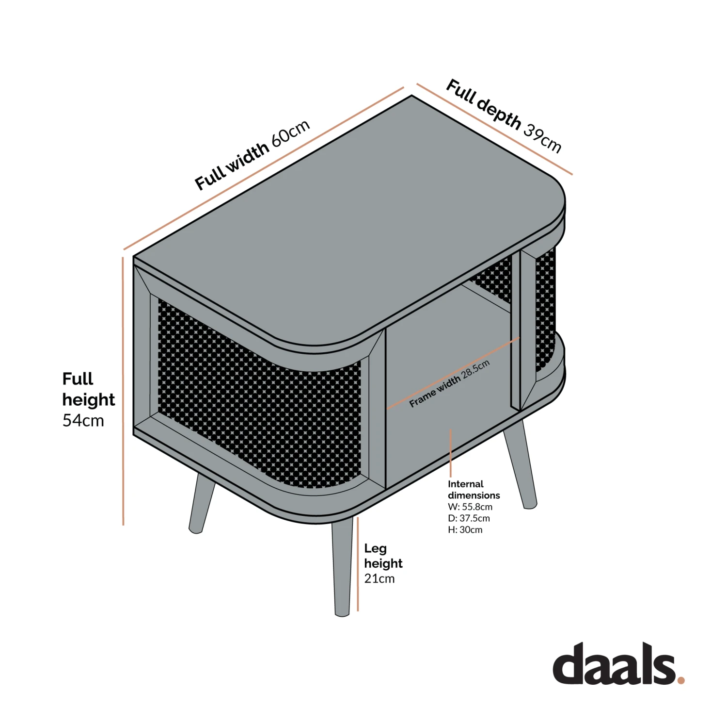 - Leg height: 21 cm