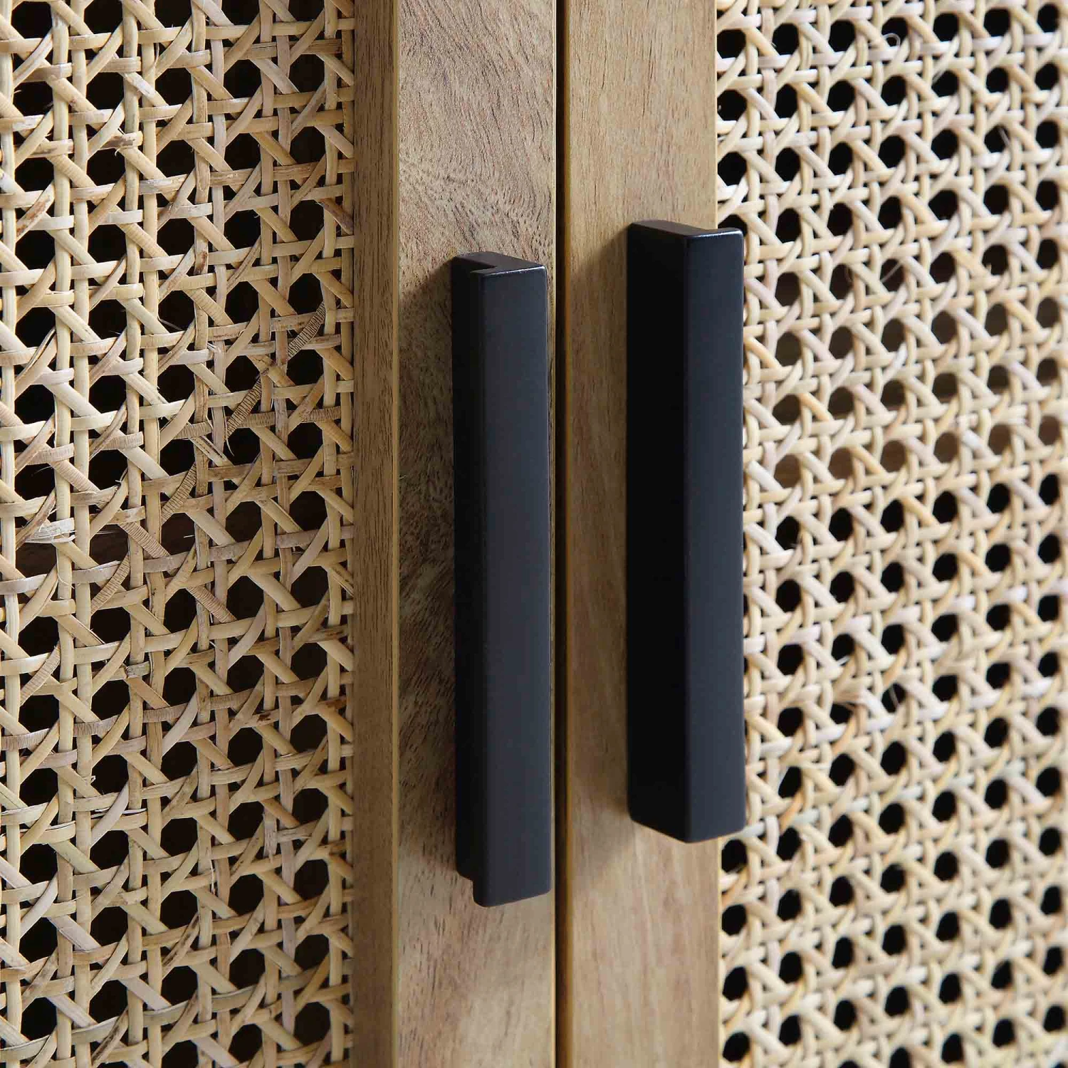- Cabinet door front: hand-woven natural rattan