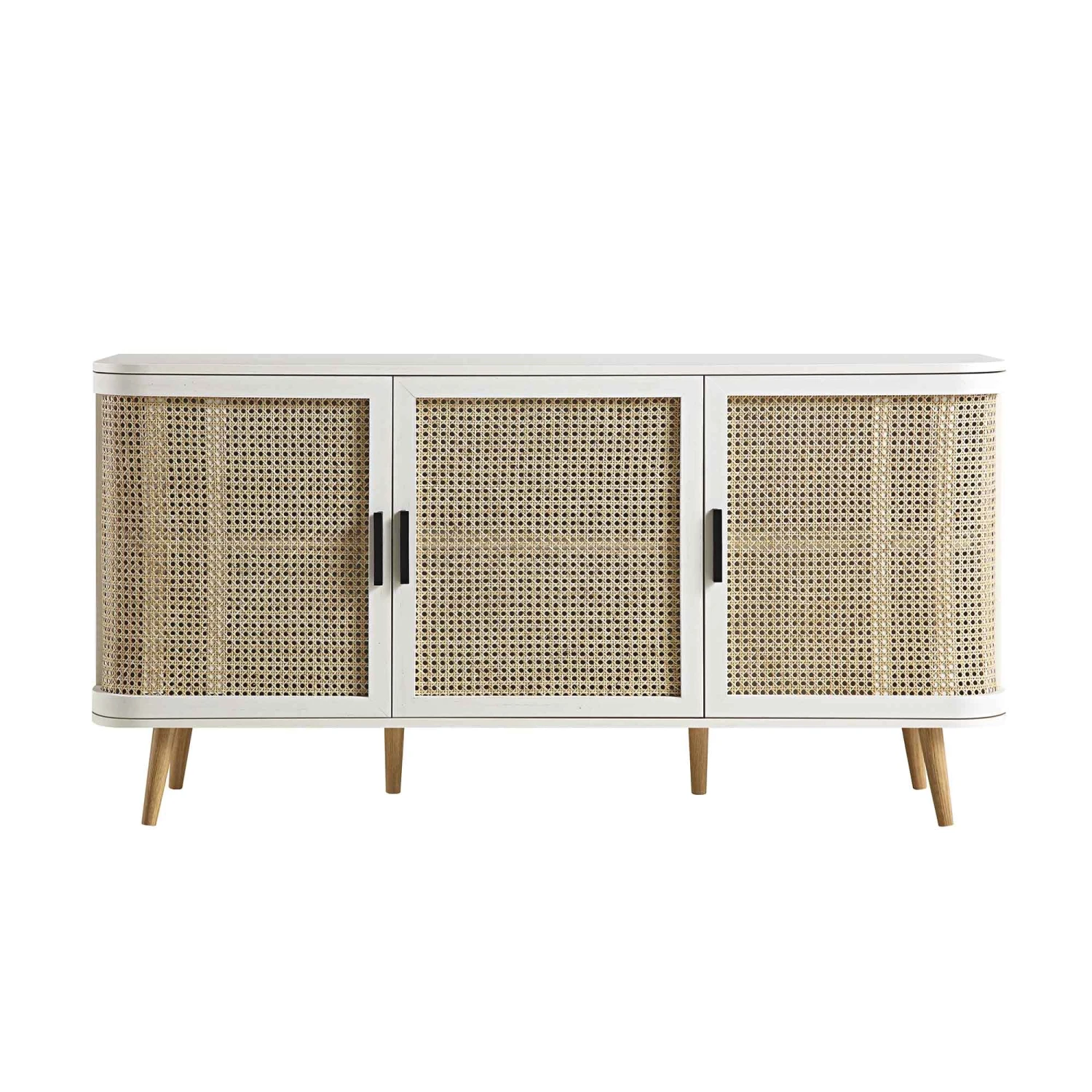 - Our Izzy sideboard features a rounded edge profile with natural rattan panelling for an airy and soft appeal.