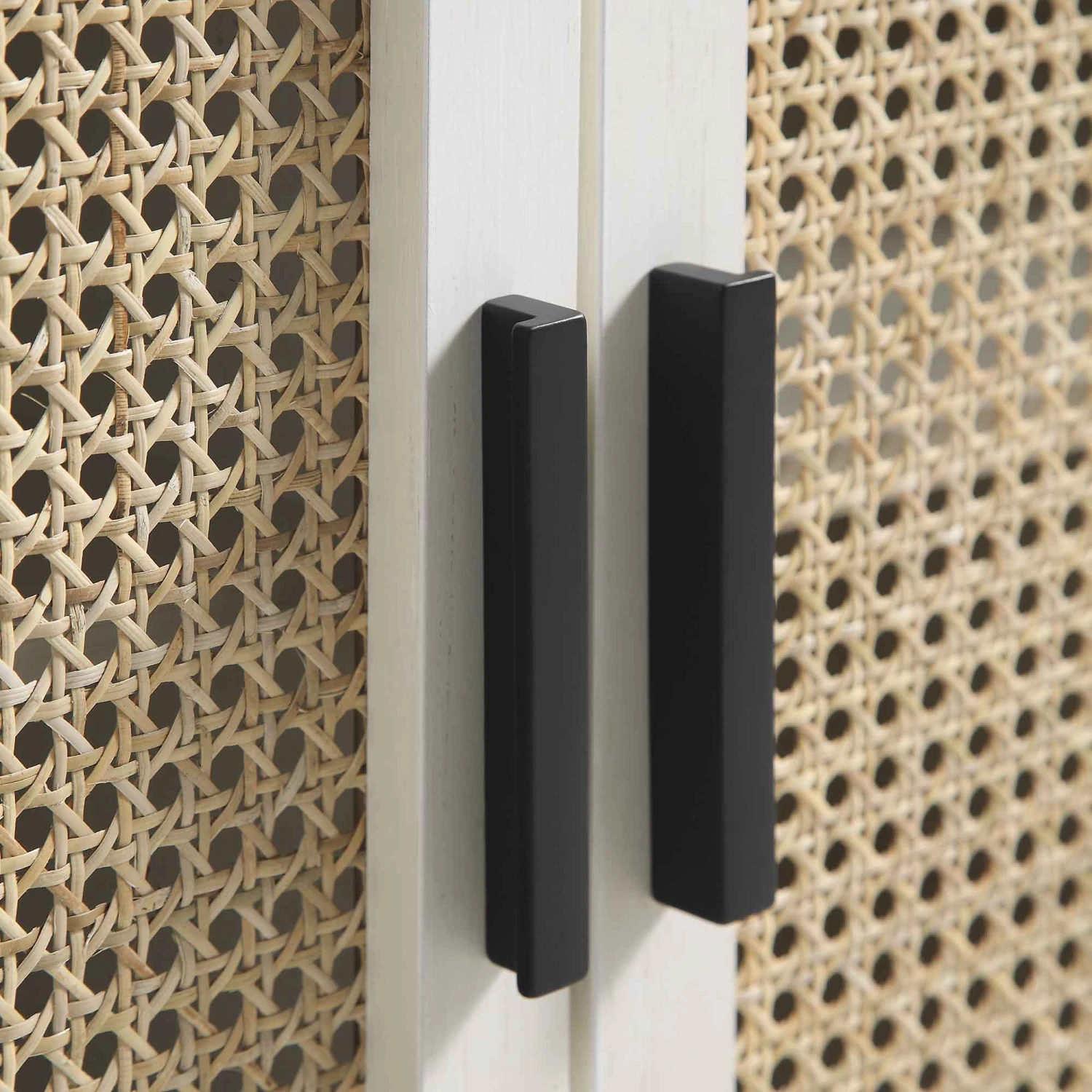 - Cabinet door front: hand-woven natural rattan