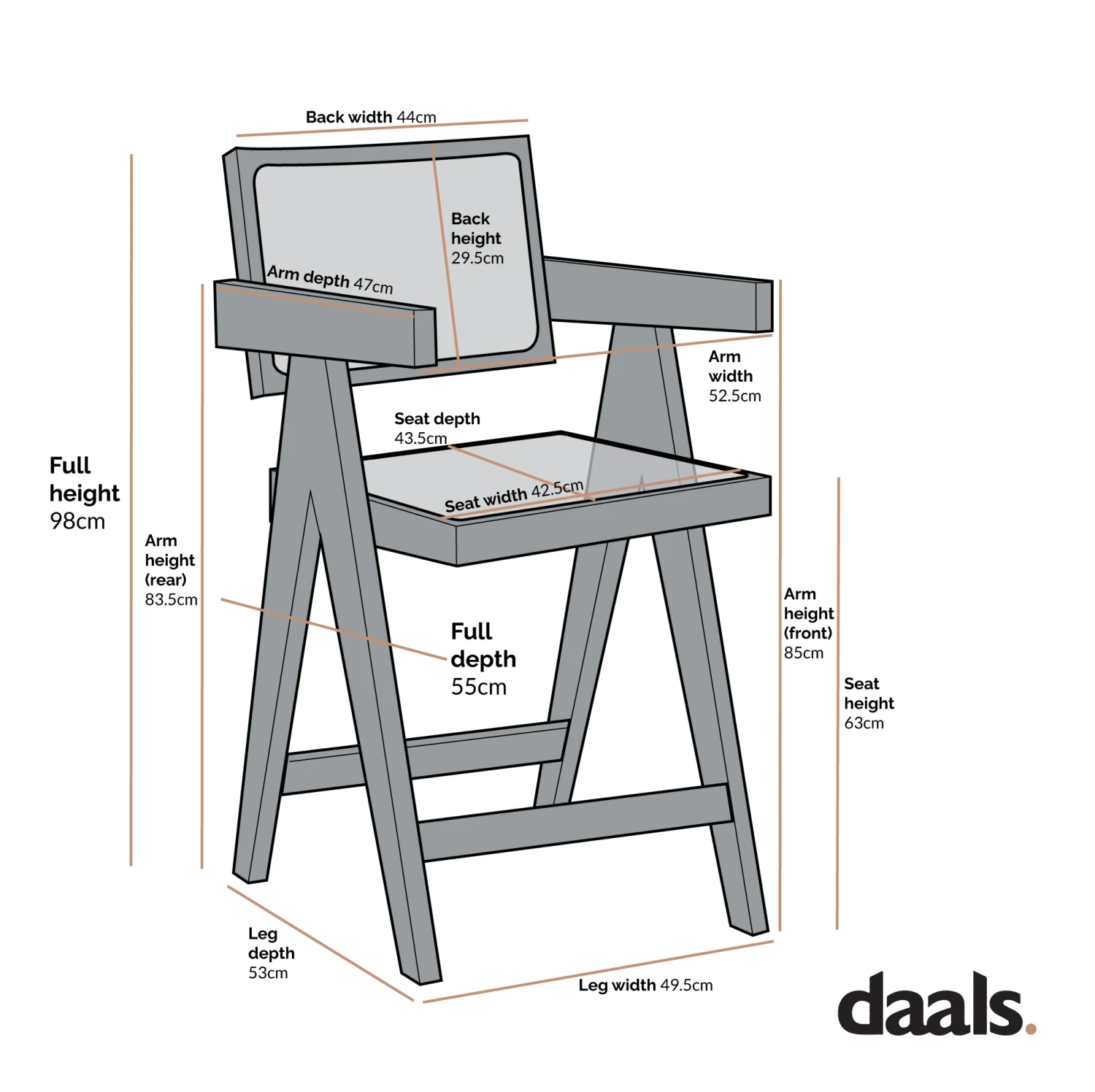 - Size: W 49.5 x D 54 x H 101 cm. Seat height: 65 cm.