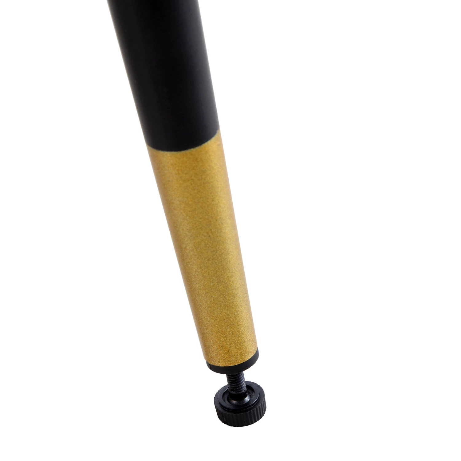 - Black metal legs are tipped with gold accent to add to the appeal of the chairs. Foot levelling adjusters make sure the chairs can accommodate uneven floors.