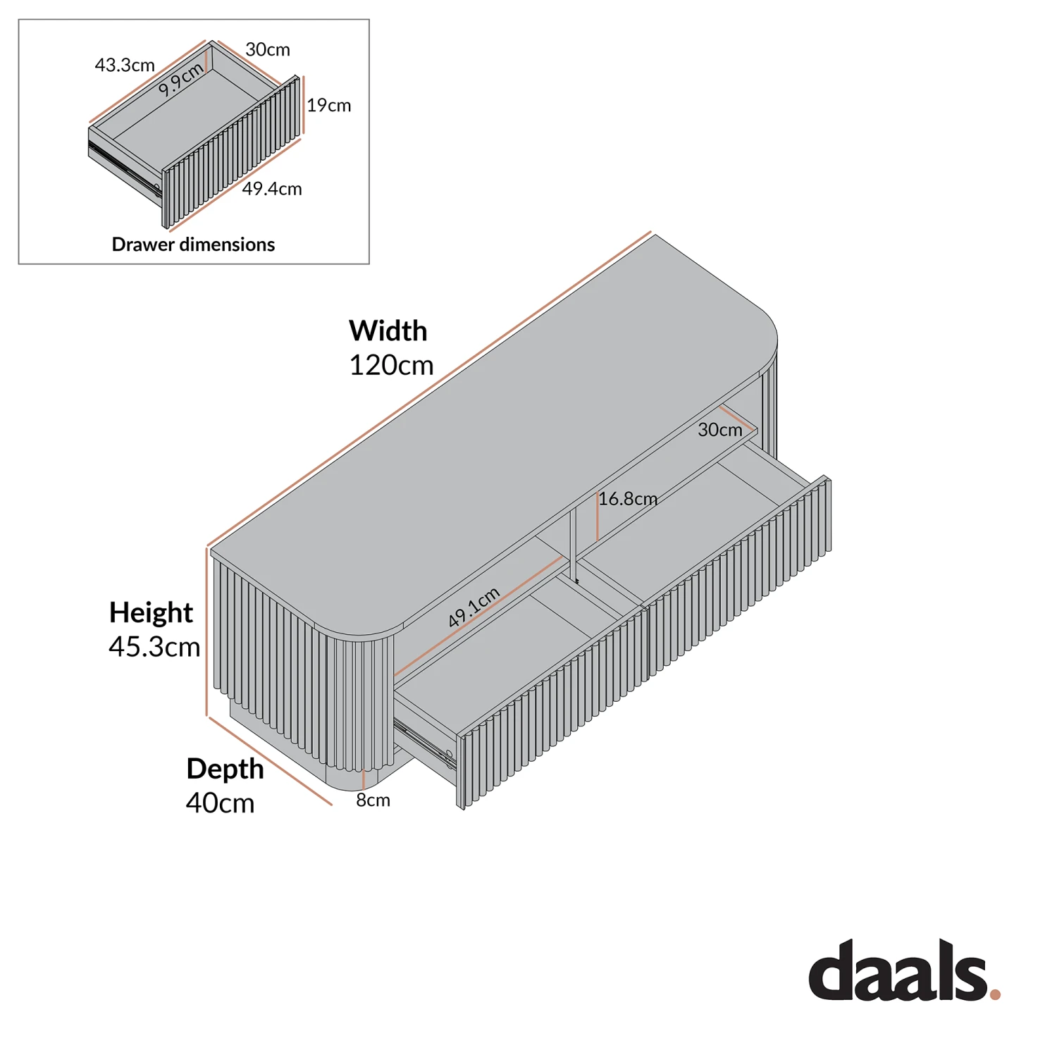 - Overall size: W 120.0 x D 40.0 x H 45.3 cm