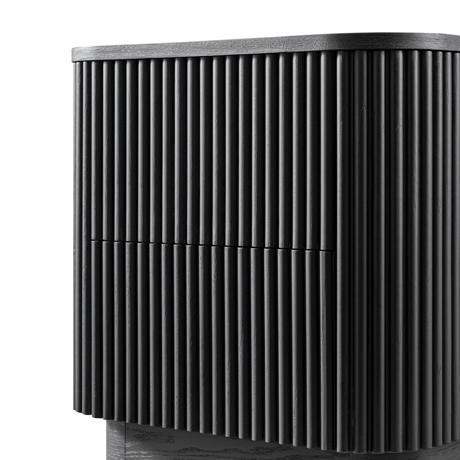 - Sculptural, moody, and quietly dramatic, our Maru 2-Drawer Bedside Table in Black adds a striking yet balanced presence to your bedroom.