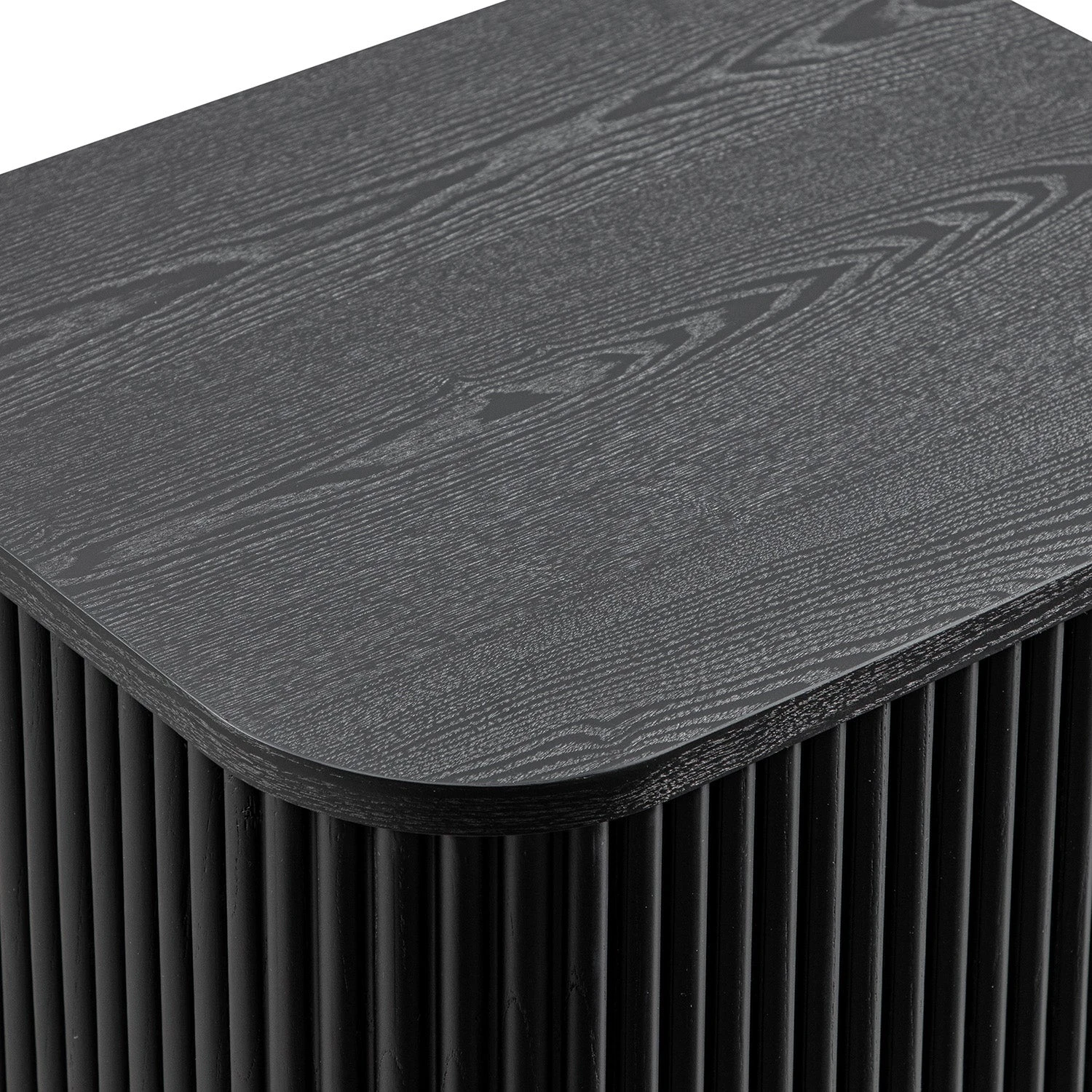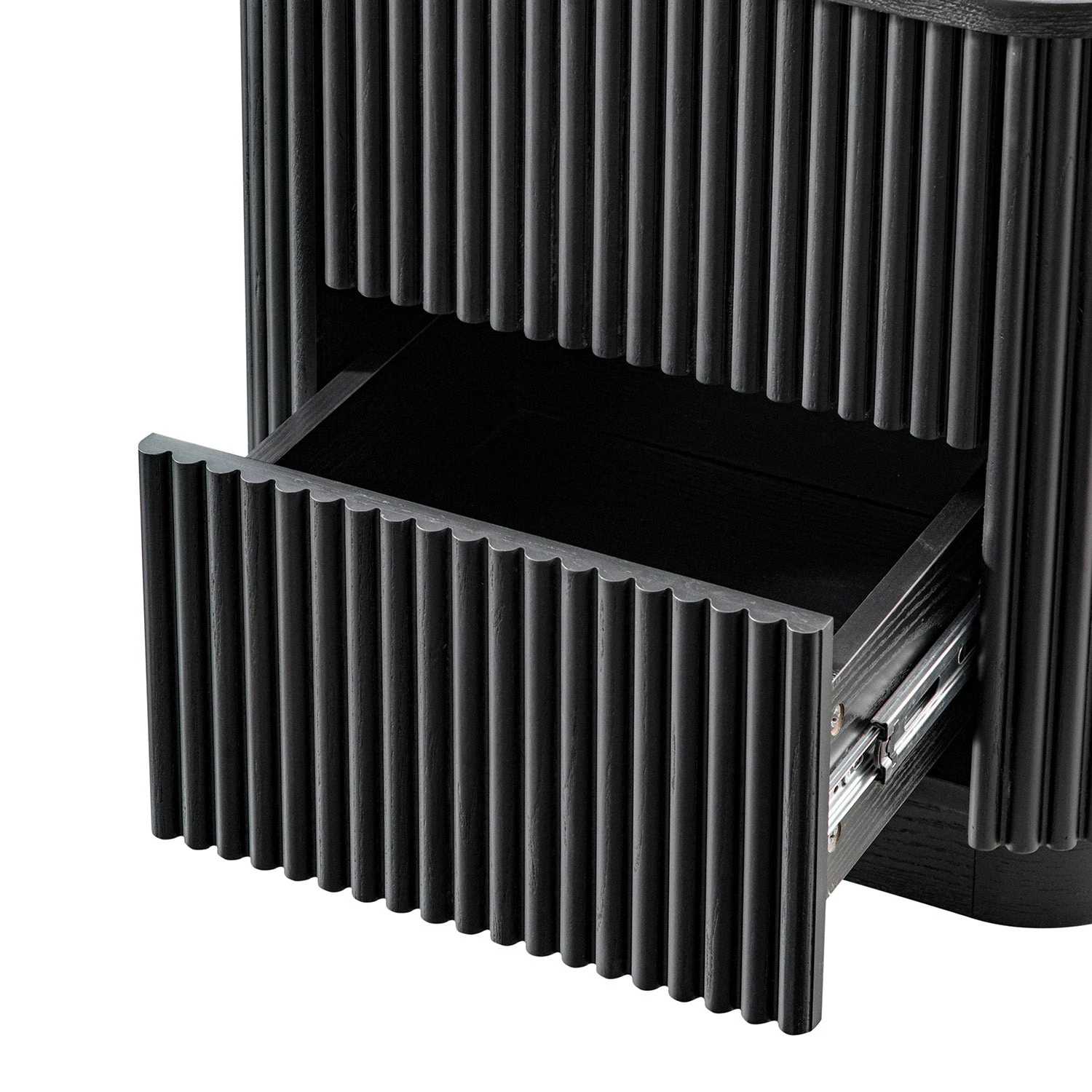 - The bedside table features all solid ash flutes on 3 vertical surfaces, including the front and both sides, for a striking and balanced look.