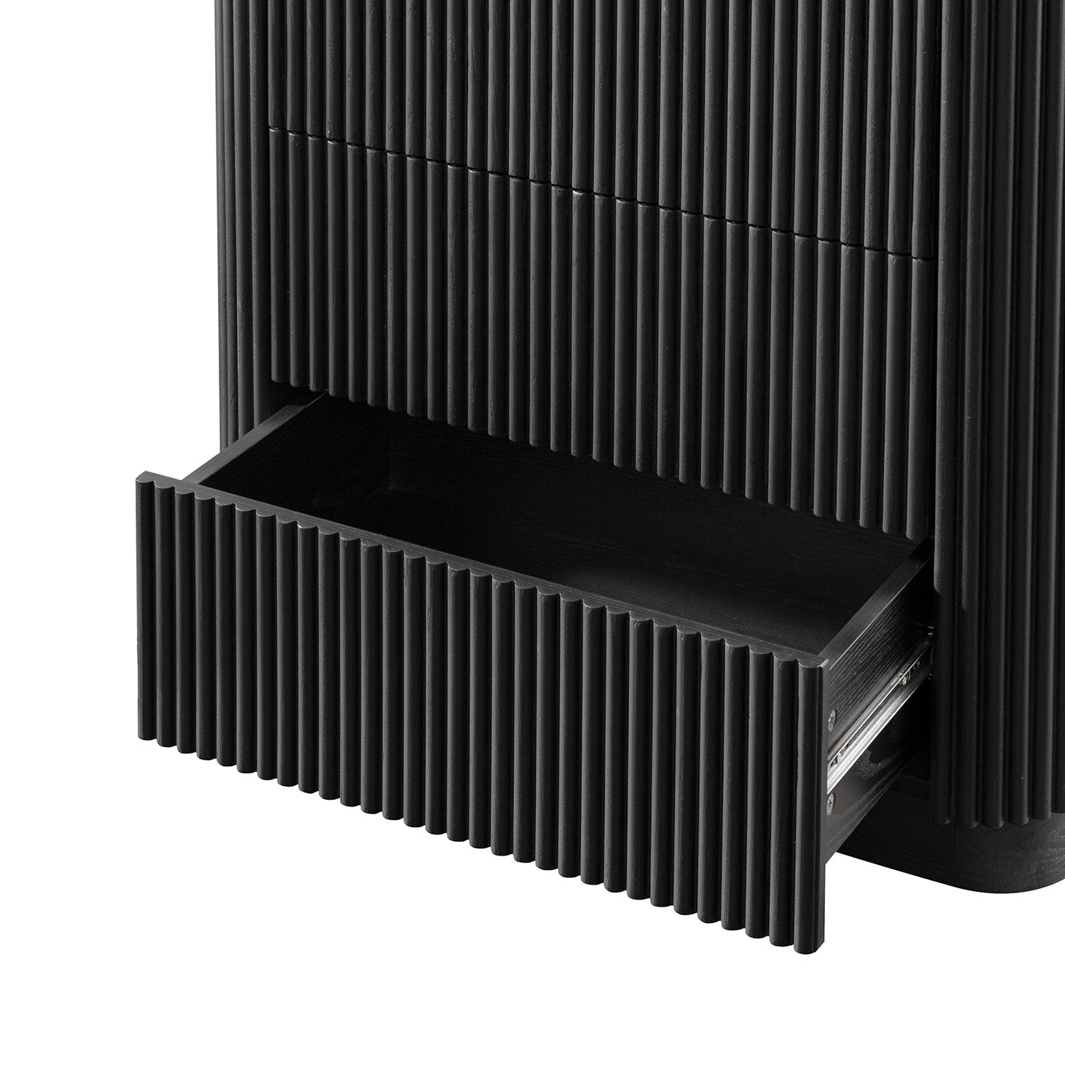 - The chest is designed with all solid ash flutes on 3 vertical surfaces, including the front and both sides, for a well-rounded look.