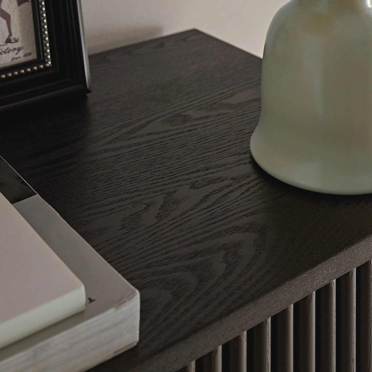 - The rich ebony finish deepens the piece’s tonal sophistication while allowing the natural grain of the ash to subtly shine through, adding organic character beneath its minimalist silhouette.