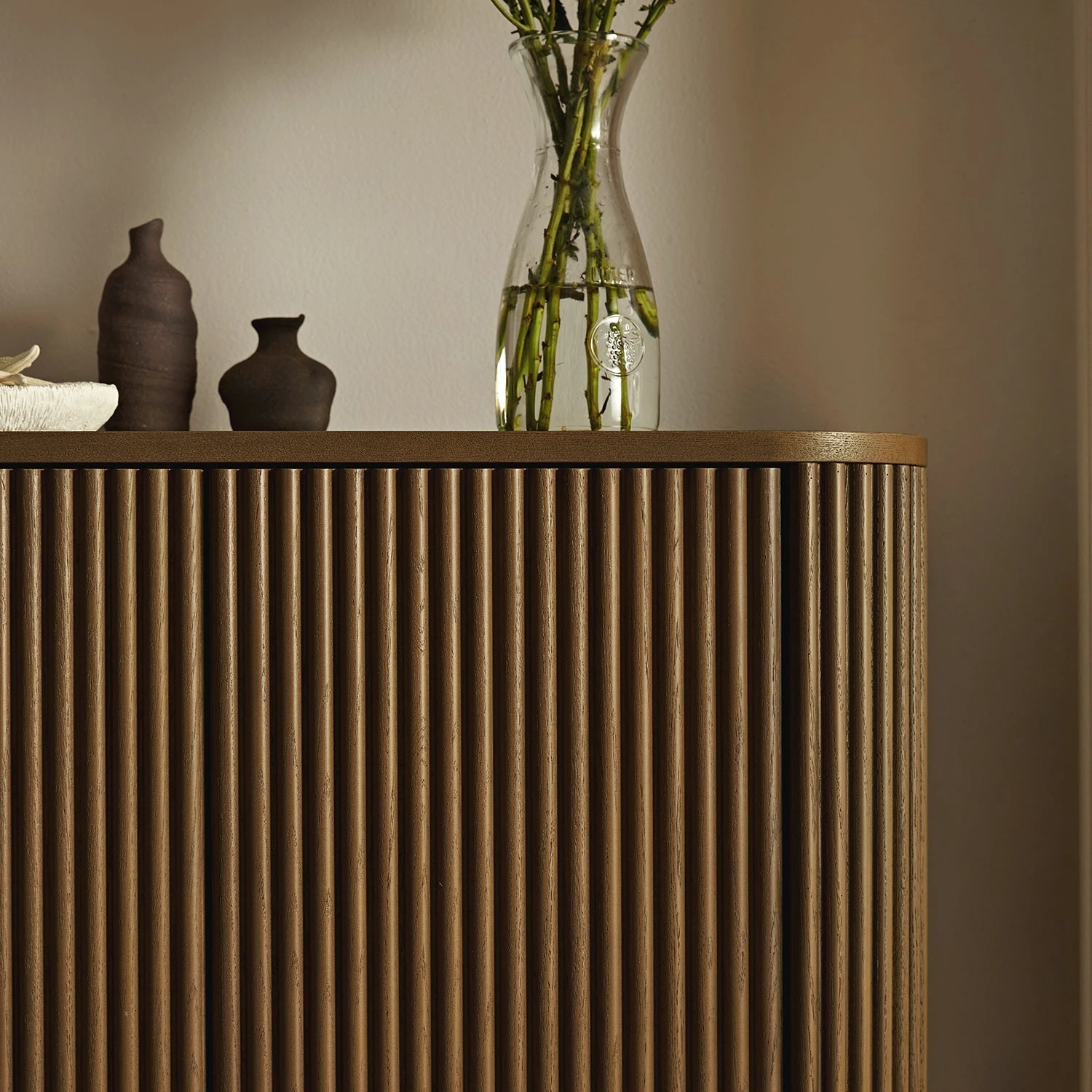 - Architectural and understated, the Maru Fluted Cabinet in Silver Oak brings tonal richness and vertical structure to any space.