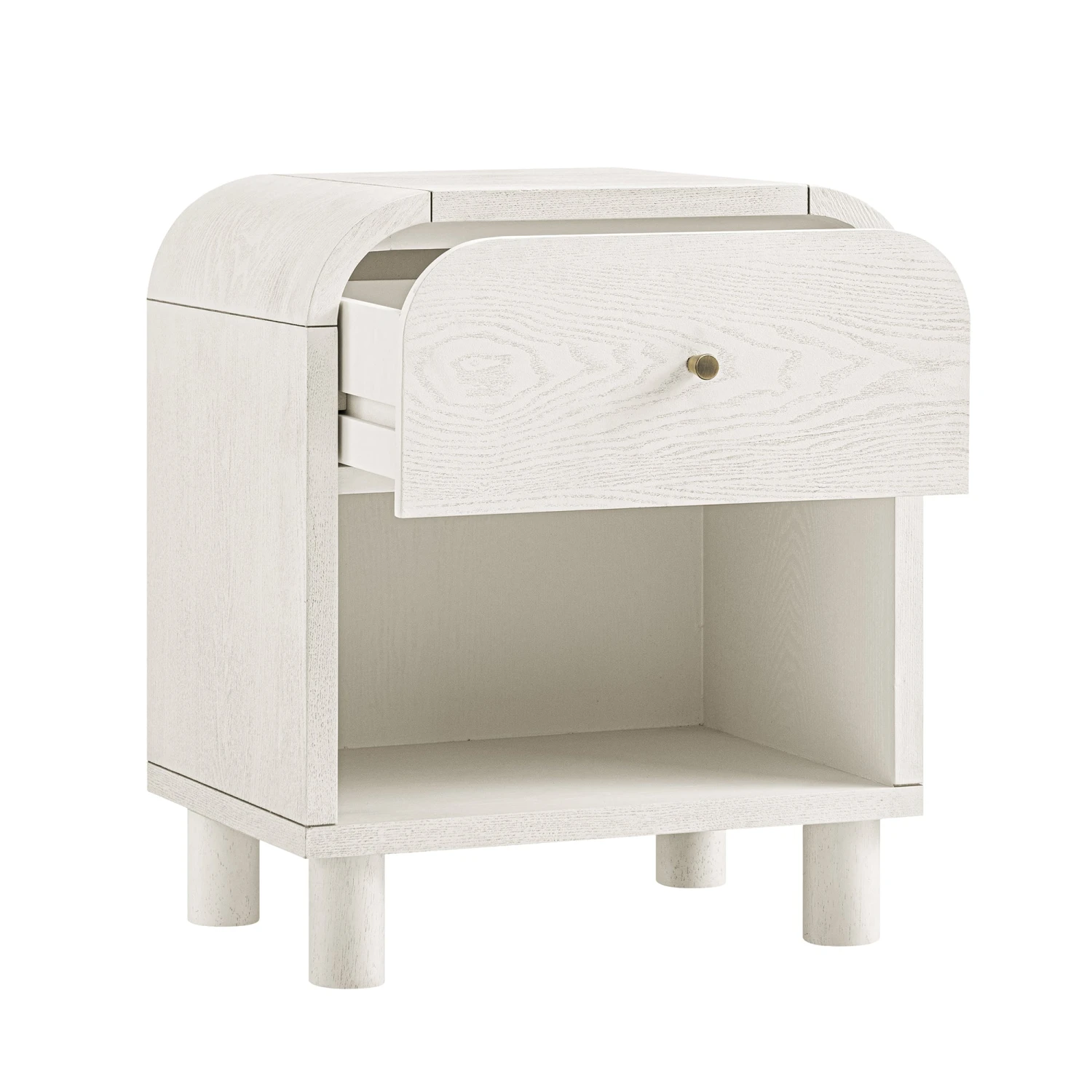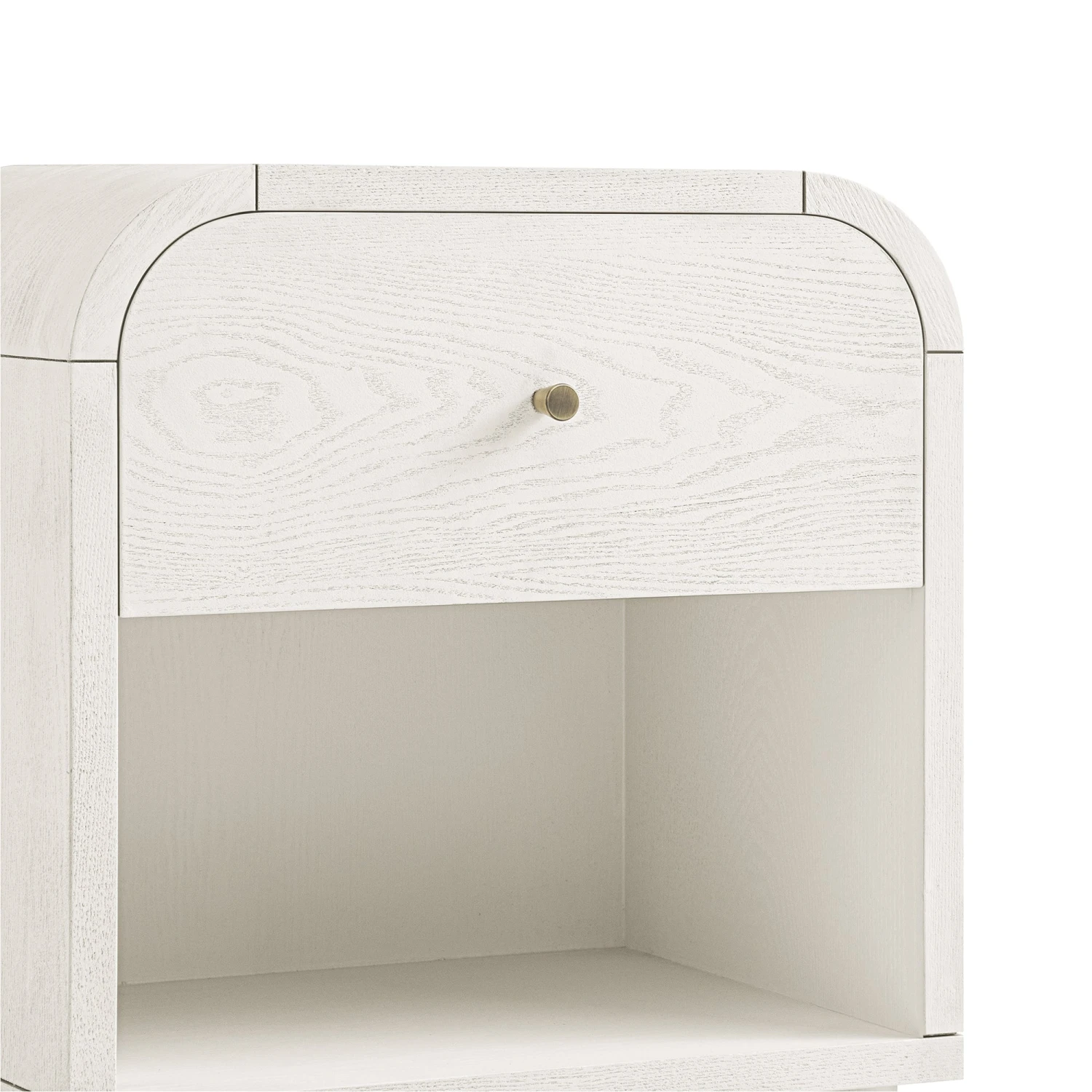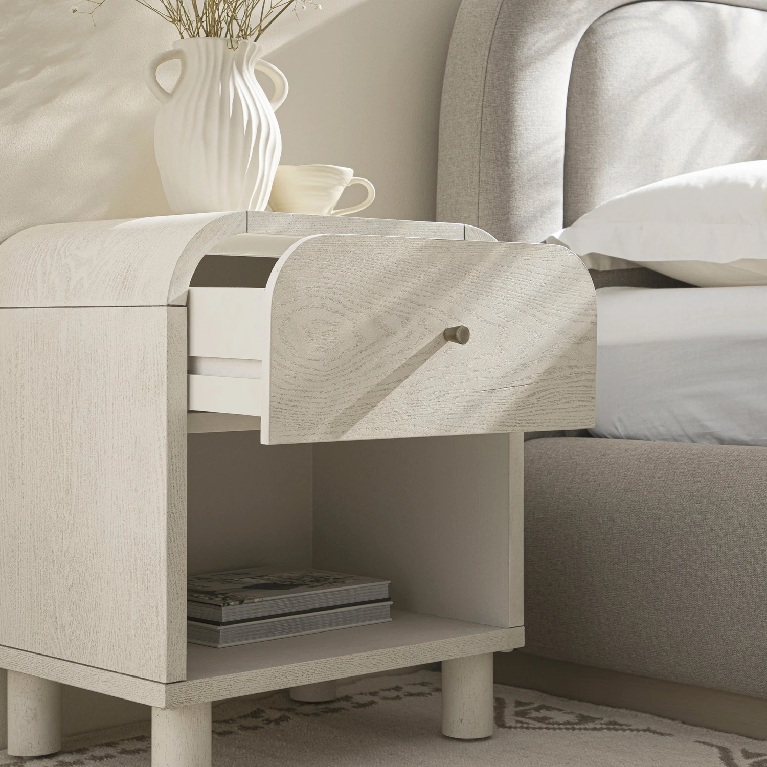 - Complete the look: Pictured with the Maude 1 Drawer Bedside Table, Washed White Ash, is our Luella Upholstered Wooden Plinth Base Storage Bed, Sand Fabric and Atlan Cream & Taupe Handwoven Wool Rug.