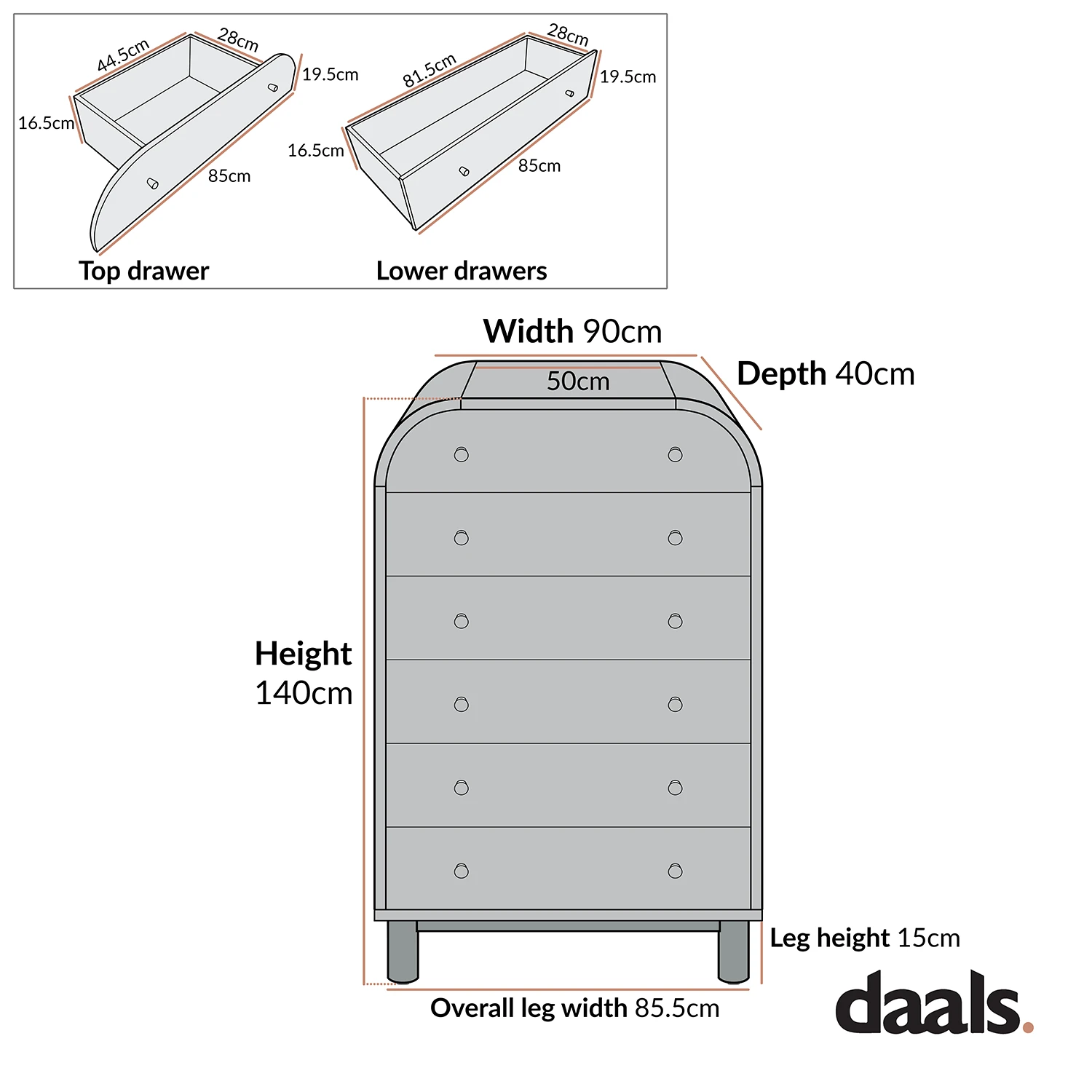 - Drawer internal storage space: W 81.5 x D 28.0 x H 16.5 cm