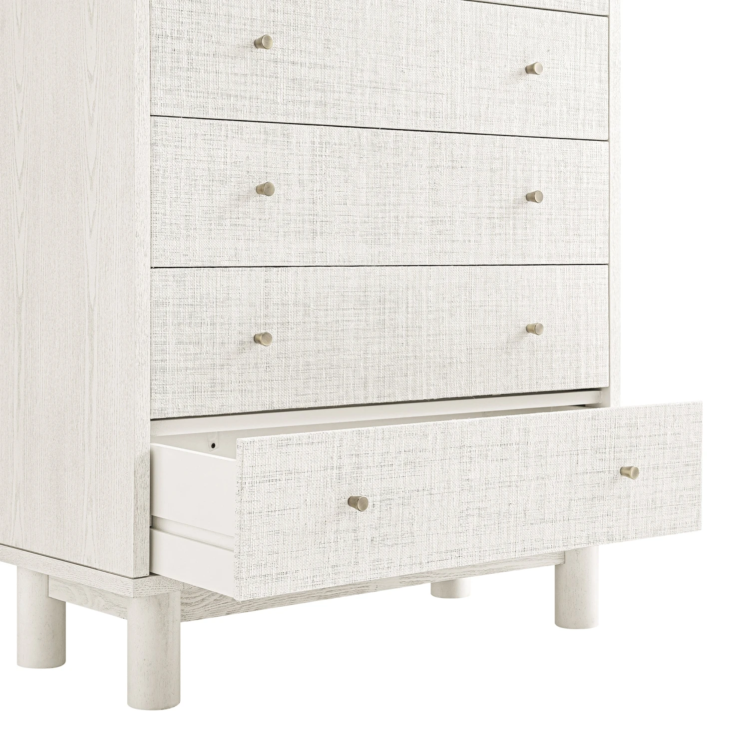 - White raffia-fronted drawers create an breezy soft appeal with beautiful natural texture.