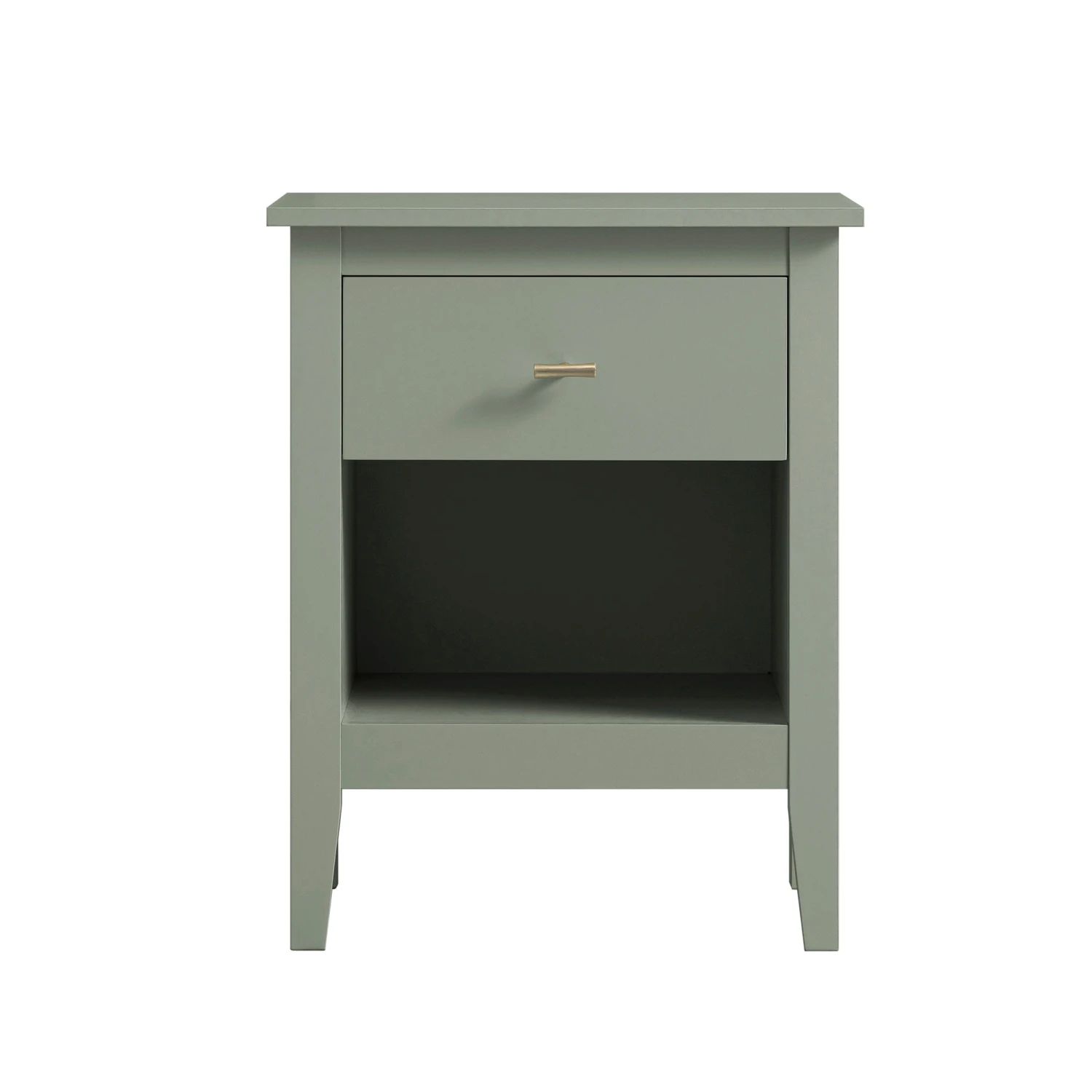 - Complete the look: Pictured with the Oakham Desert Sage Bedside Table is our Pembroke Stripe 100% Linen Green Cushion, Chilworth Dark Grey Upholstered Ottoman Storage Bed and Margot Bluebell Blue Embroidered Scallop Duvet Set.