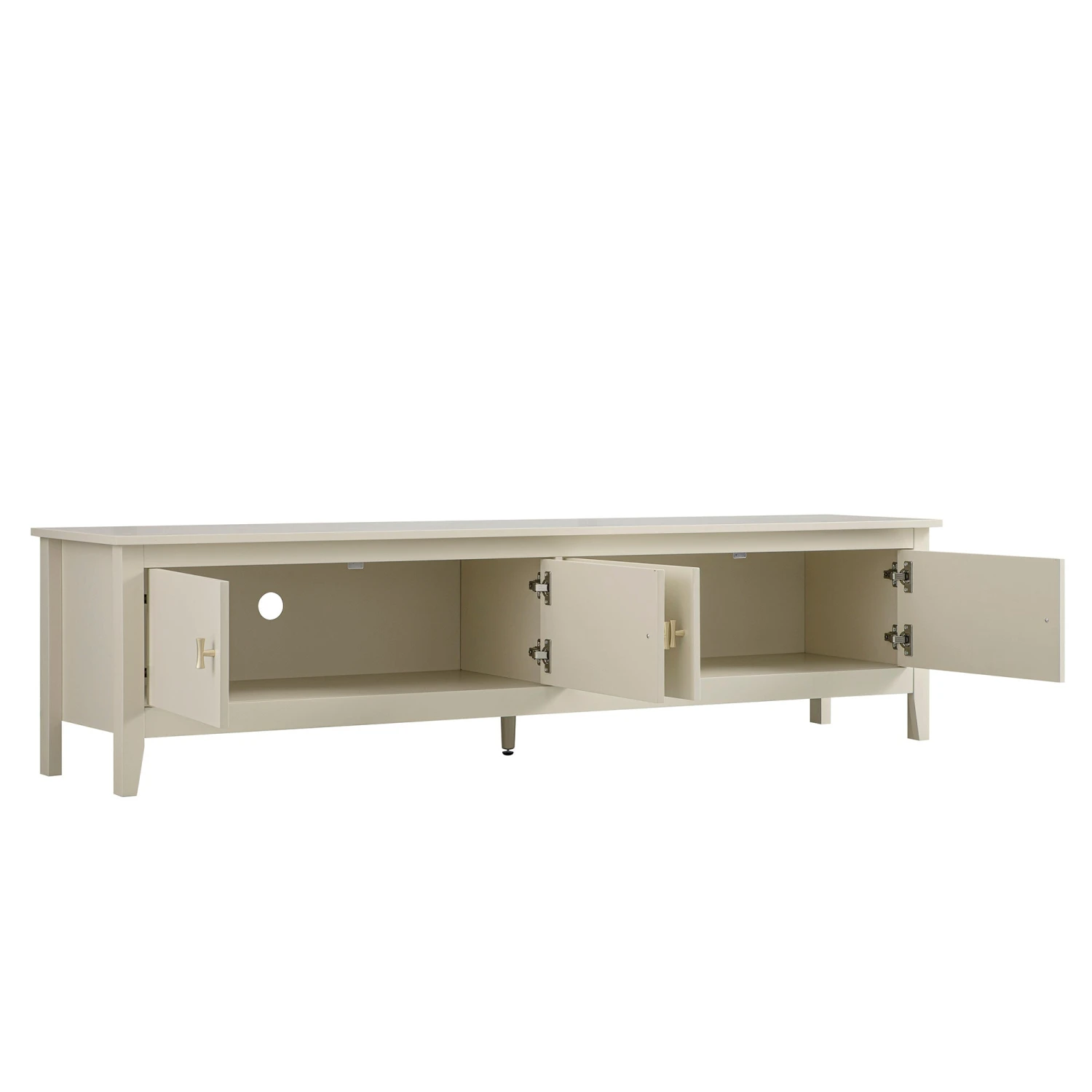 - Spanning a generous 180cm, this unit is ideal for larger TVs, with two roomy cupboard sections behind four panelled doors, each with a cable hole to keep wires neatly tucked away.