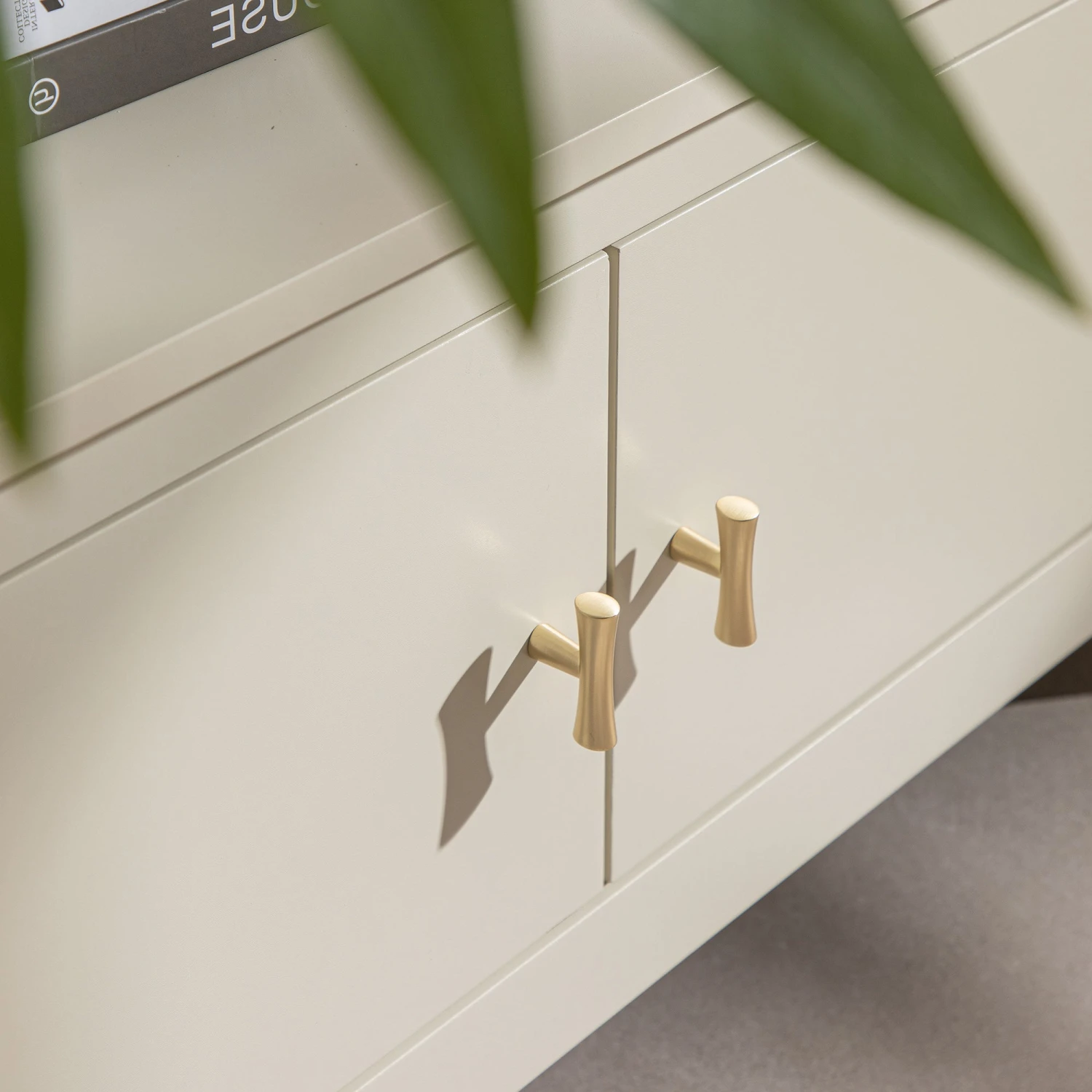 - Complete the look: Pictured with the Oakham Shaded White TV Unit is our Pembroke Stripe 100% Linen Oatmeal Cushion and Atlan Cream & Taupe Handwoven Wool Rug.