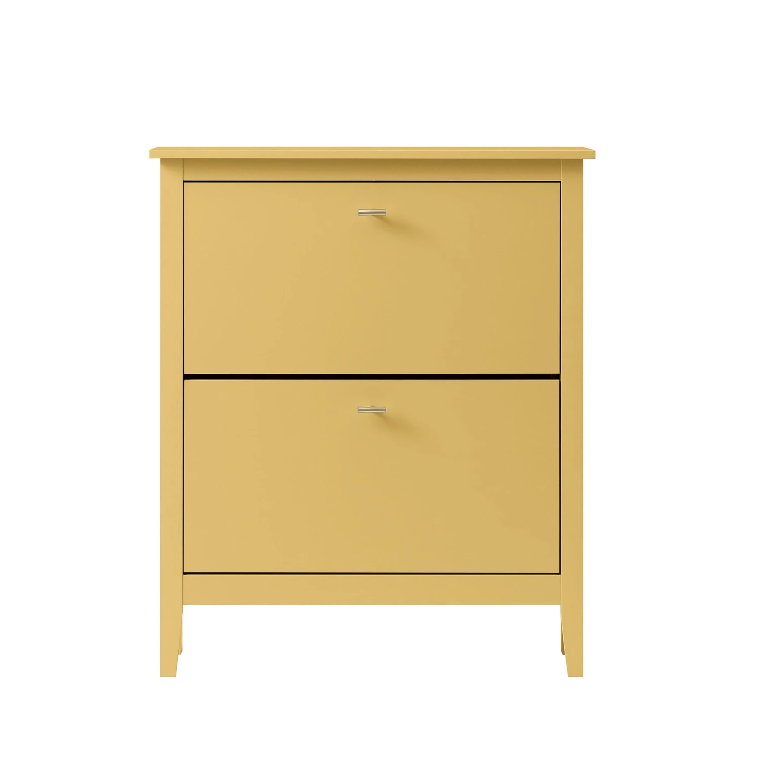 - Brighten up your entryway with the joyful charm of our 2-tier shoe cabinet in Rattan Yellow—a sun-washed ochre hue reminiscent of vintage wicker and summer fields.