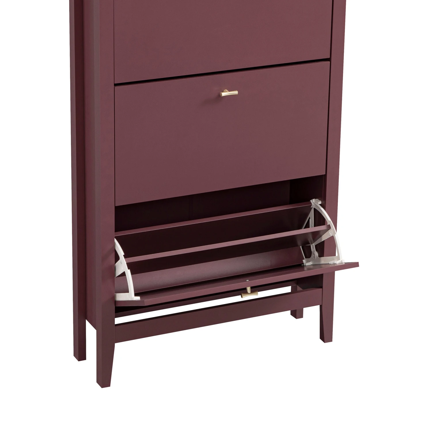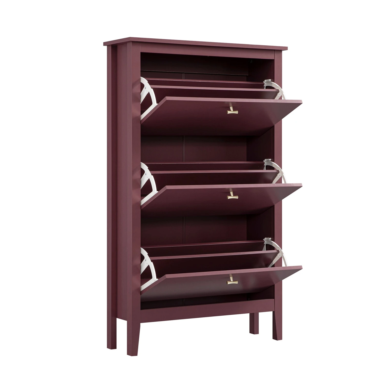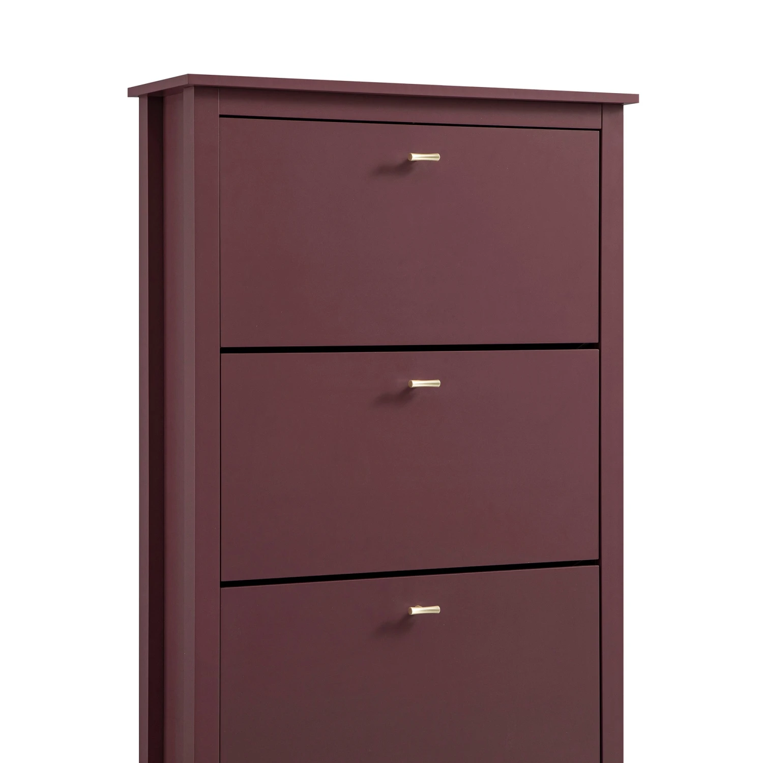 - Sleek, structured, and full of character, our Oakham 3-Tier Shoe Cabinet in Wild Cherry adds rich warmth to your entryway or bedroom while keeping everyday clutter out of sight.