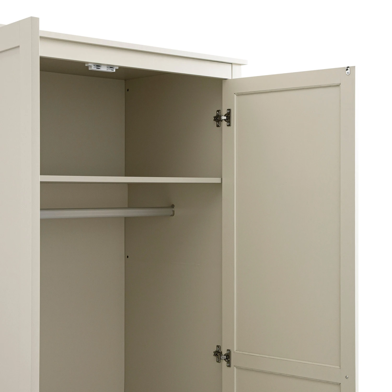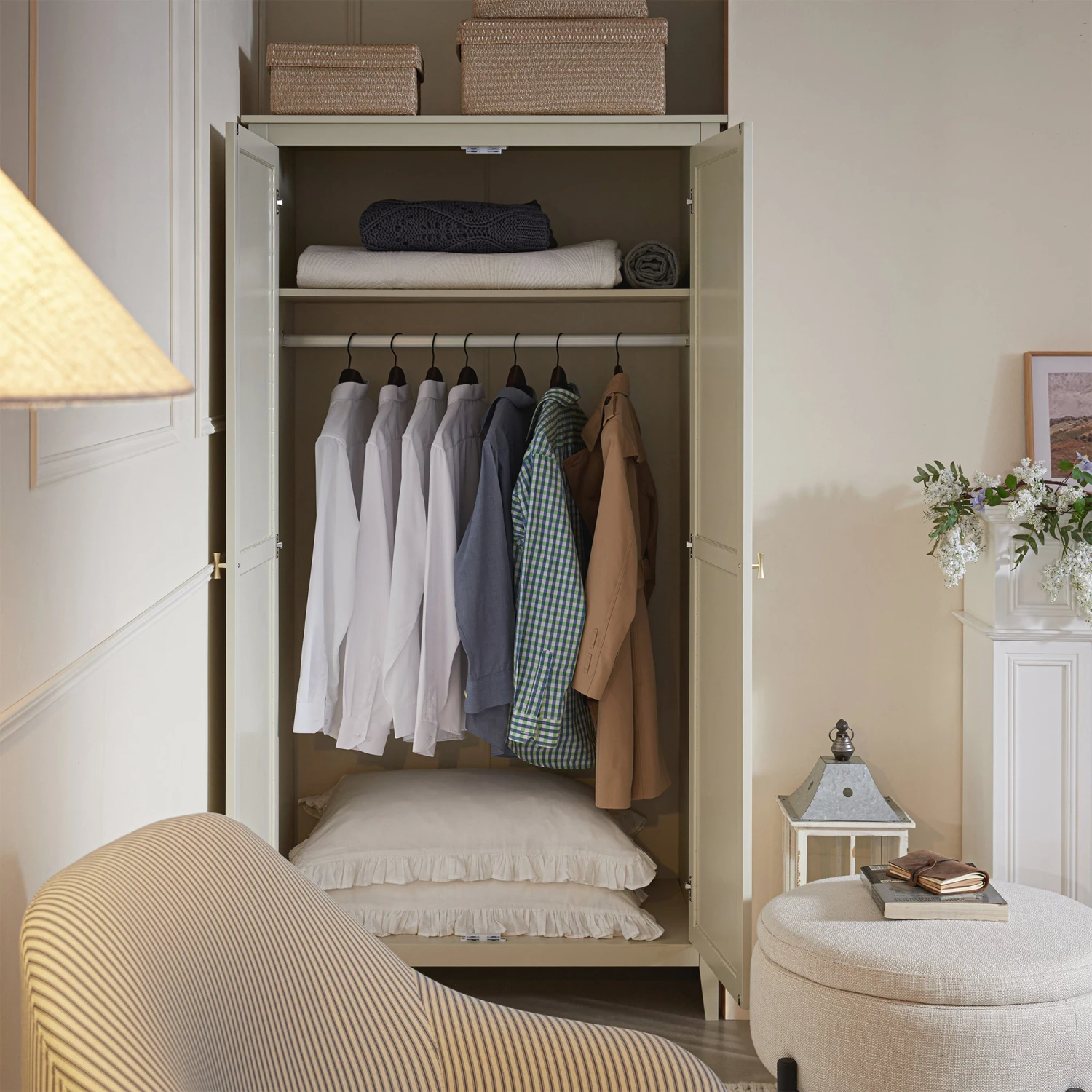 - Streamlined and elegant, our Oakham double wardrobe in Shaded White offers a calming, refined presence in any bedroom.