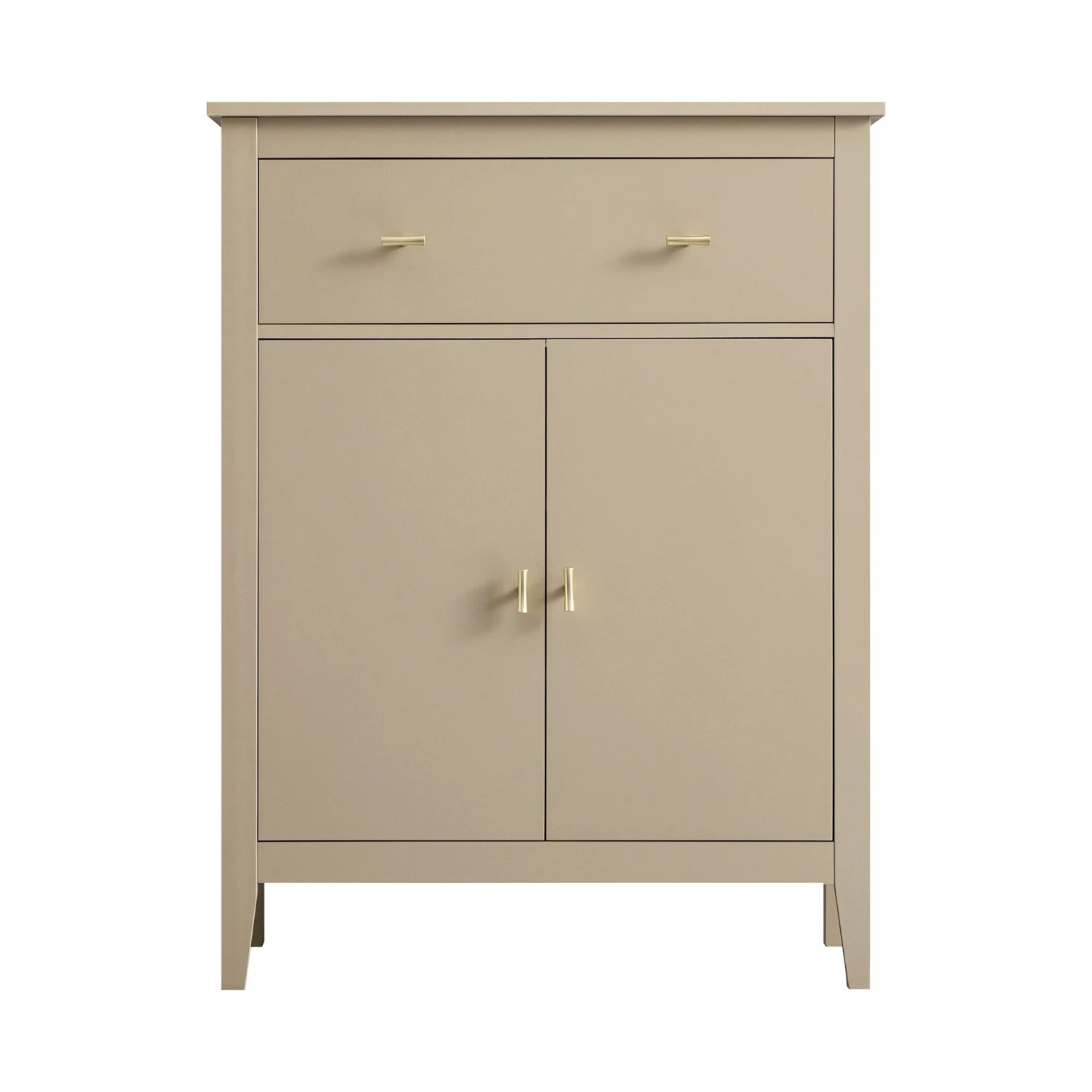 - Designed with both elegance and practicality in mind, it features a top drawer for everyday essentials, while the double-door cupboard below opens to adjustable shelving, ready to house everything from tableware to home office supplies.