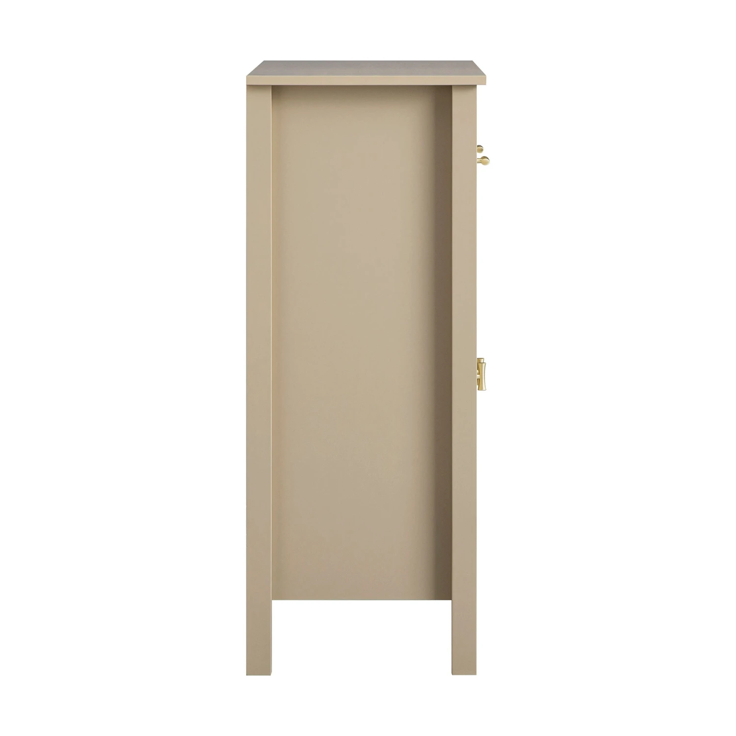 - Finished with understated T-bar brass handles and slim legs, the small sideboard maintains a light, elevated silhouette, lending an effortless sense of calm and order to smaller rooms, hallways, or anywhere you need a touch of functional beauty.