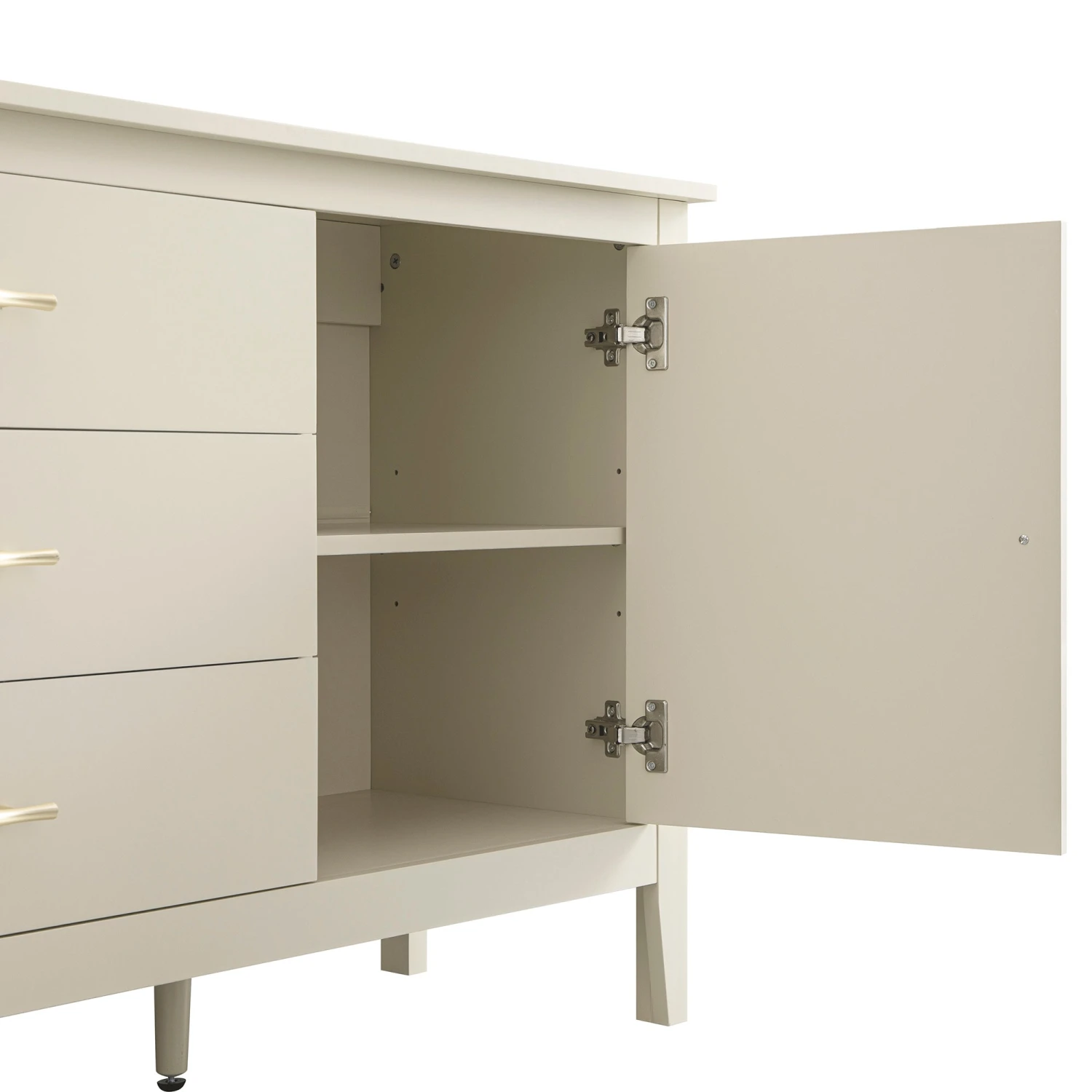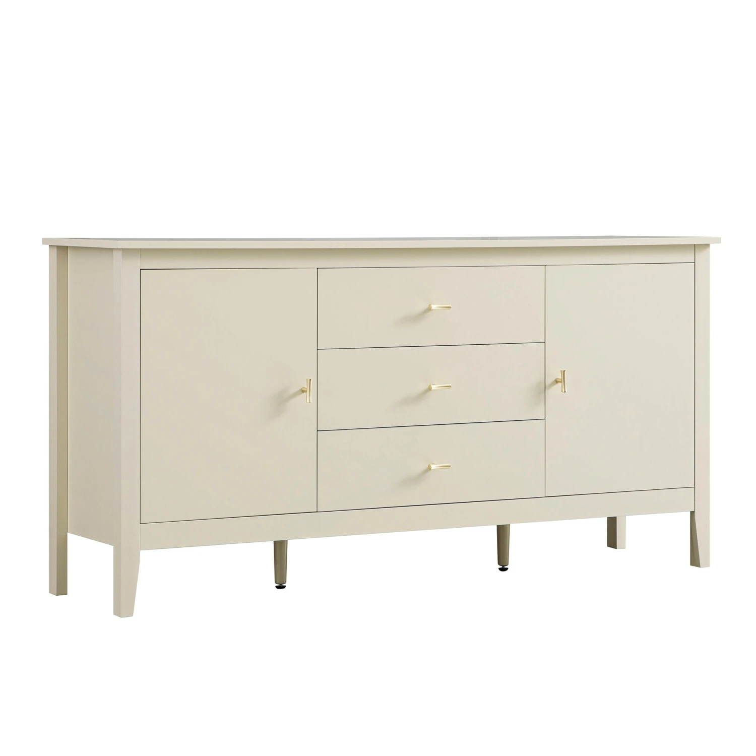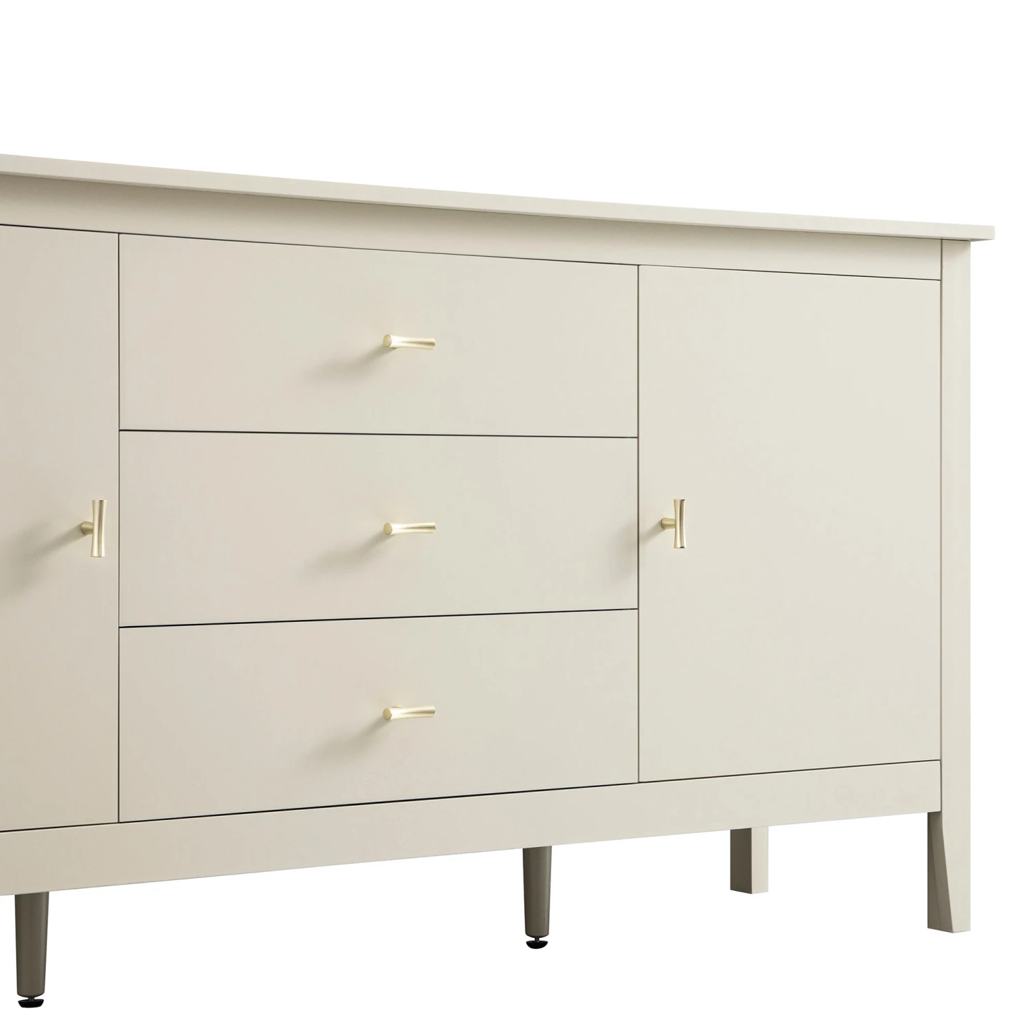 - Subtle gold-toned handles add a touch of understated luxury, perfectly complementing the calm, off-white painted finish.