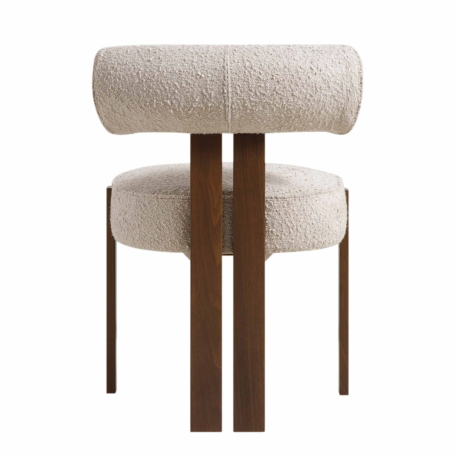 - Combining chic taupe boucle upholstery and walnut wood effect frame, our Ophelia dining chair fits seamlessly in your room to create an inviting dining space.