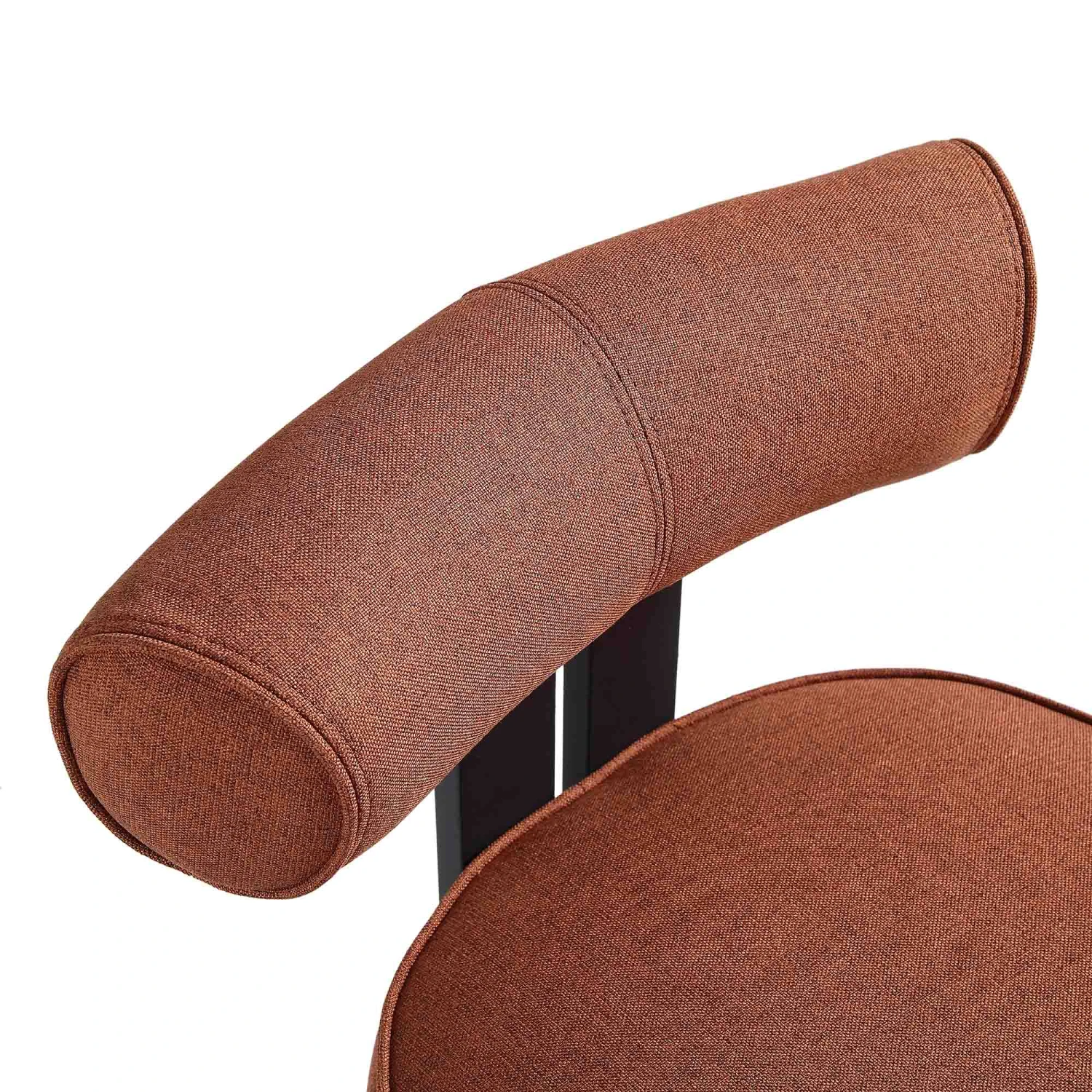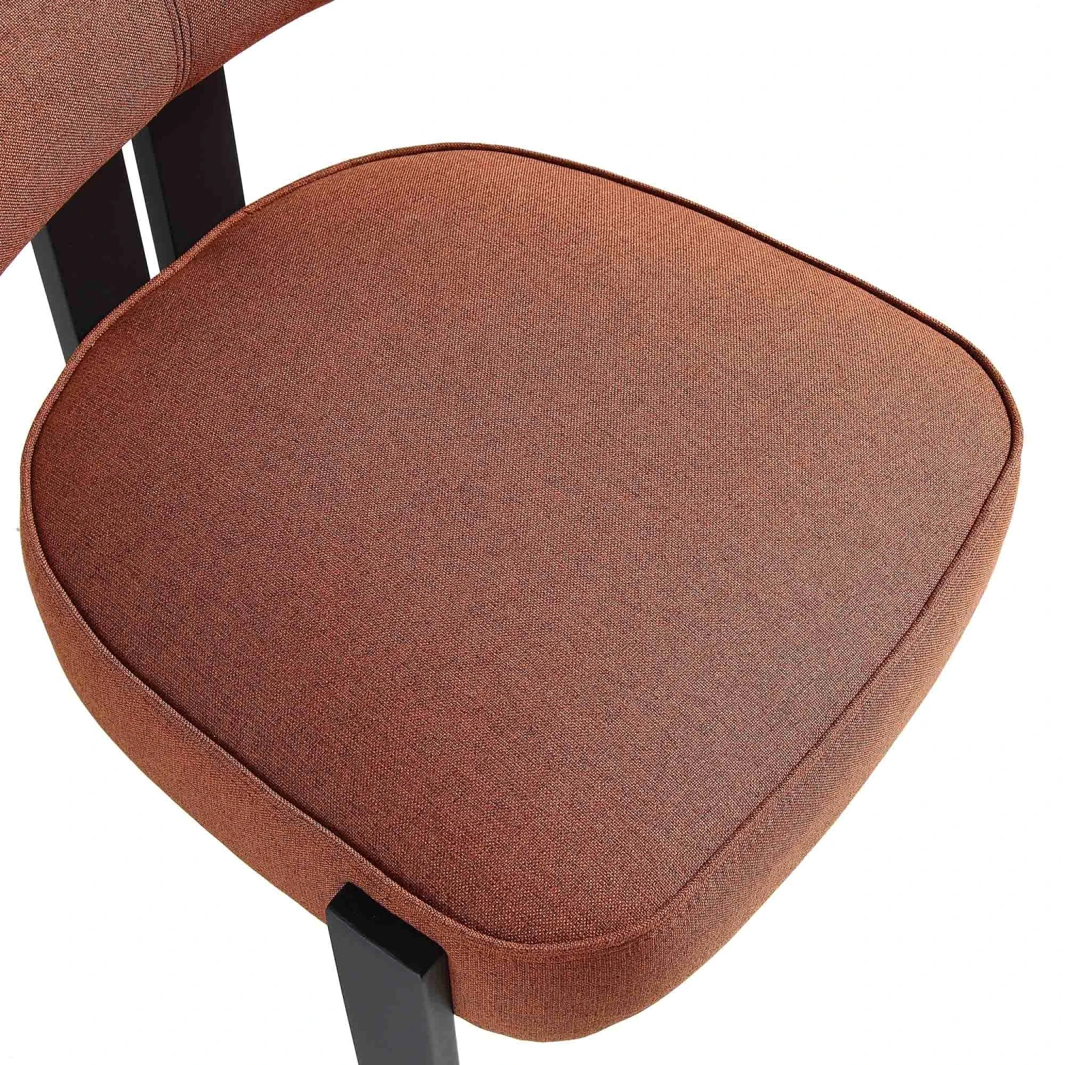 - Combining earthy terracotta fabric and black matte frame, our Ophelia dining chair fits seamlessly in your room to create an inviting dining space.